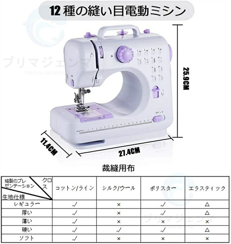 返し縫い機能付 12種縫い目 操作簡単 初心者利用可 コンパクトミシン 電動ミシン 家庭用電動ミシン