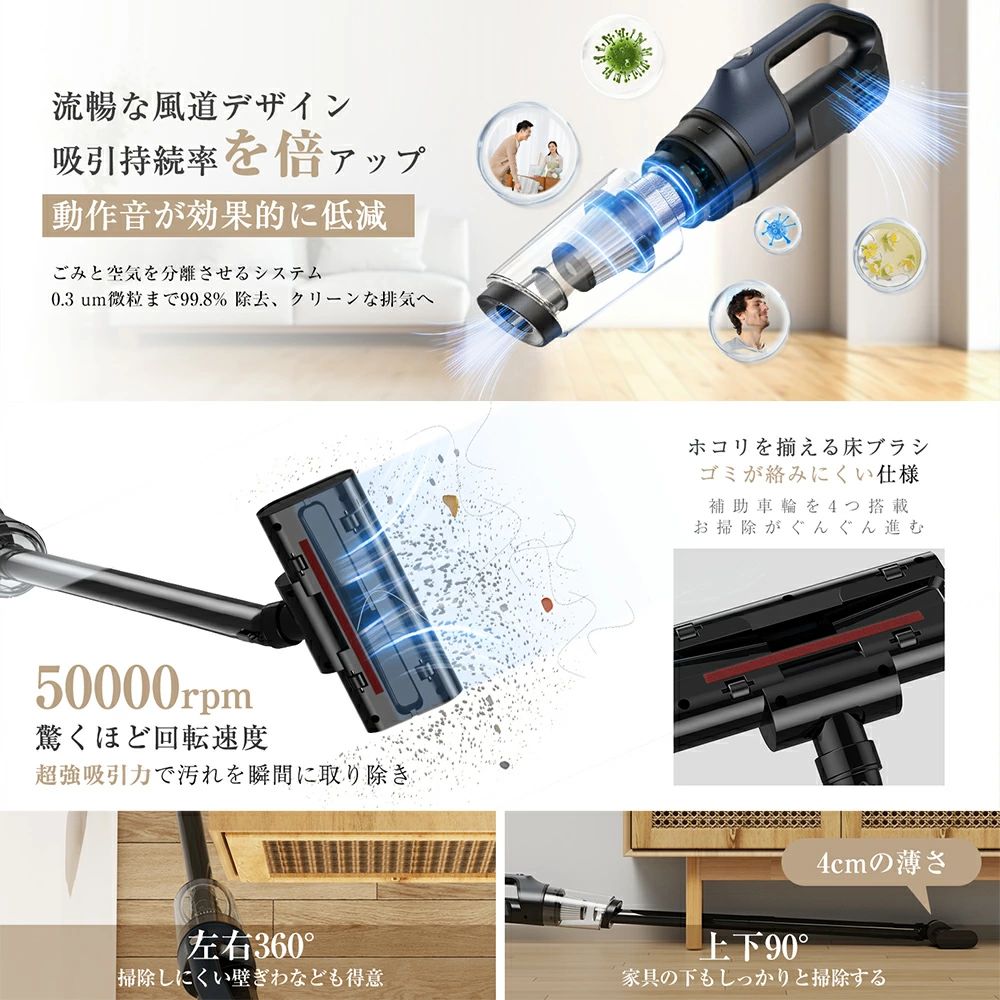 【12,000Paパワフル吸引、ワンタッチ操作】 超純銅ターボモーターを搭載し、最大吸引12000Paをサポートし。 最大吸引力が8,000 PAしか達成できない市販の掃除機と比較して、この掃除機の最大吸引力は3分の1大きくなります。