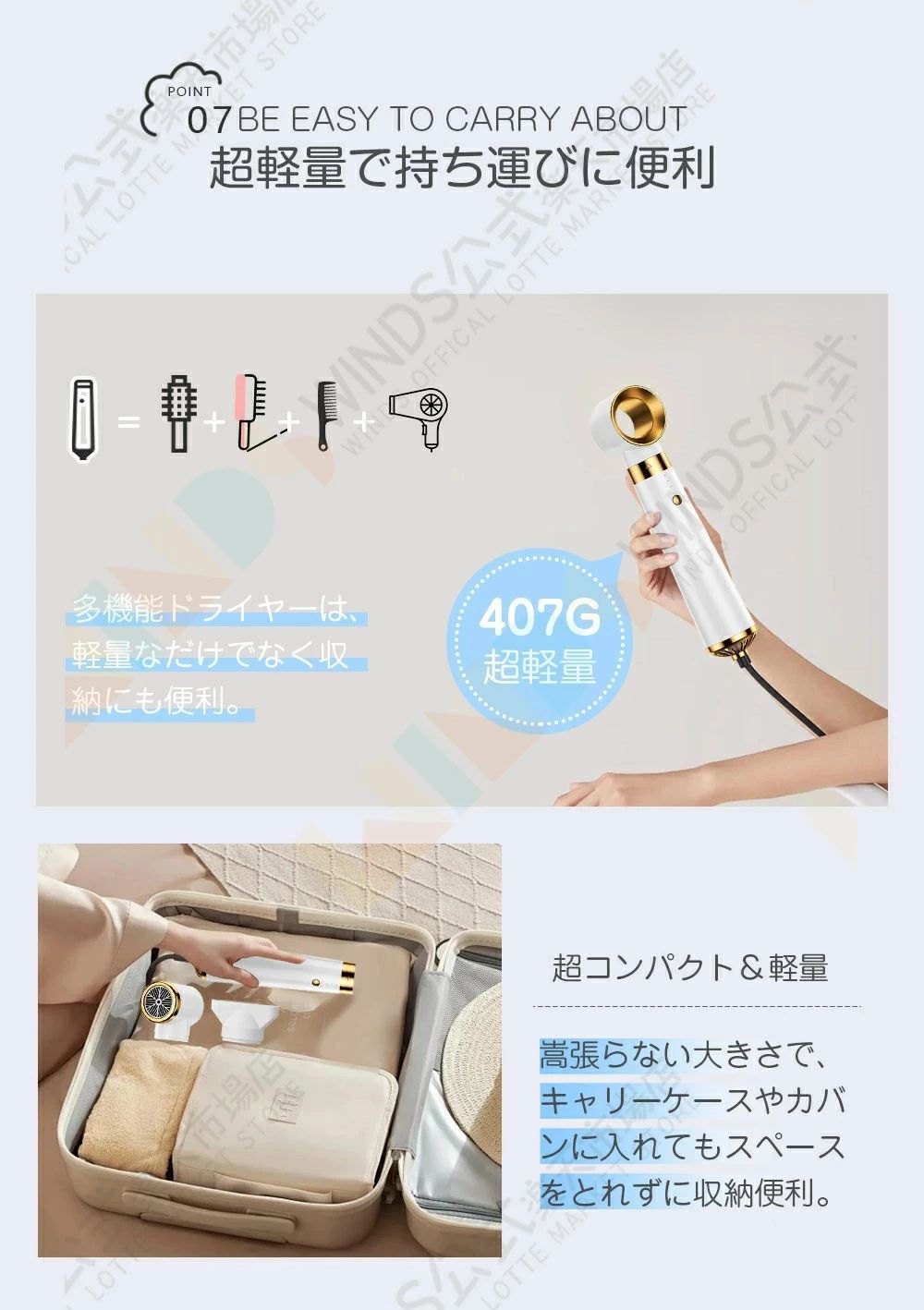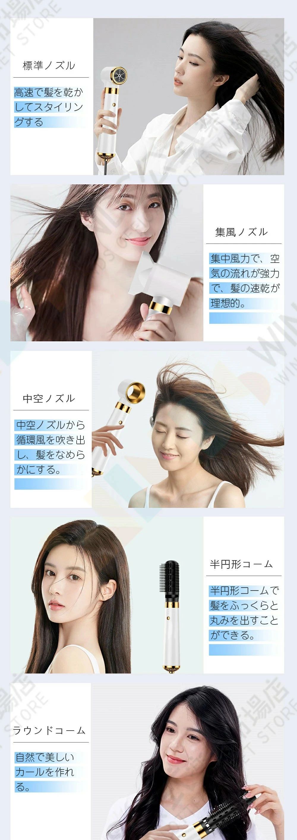 5IN1 ドライヤー 大風量 速乾 ノズル5点付き 軽い マイナスイオン 小さい おしゃれ 高風量 3段階 カールヘアケア 低騒音 美 ストレートヘアドライヤー