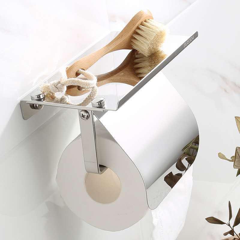 トイレットペーパーホルダー 304ステンレス製 スマホ置き付き 鏡面仕上げ ホテル バスルーム トイレ 壁掛け式 防水 モダン シンプル ペーパーラック 防錆