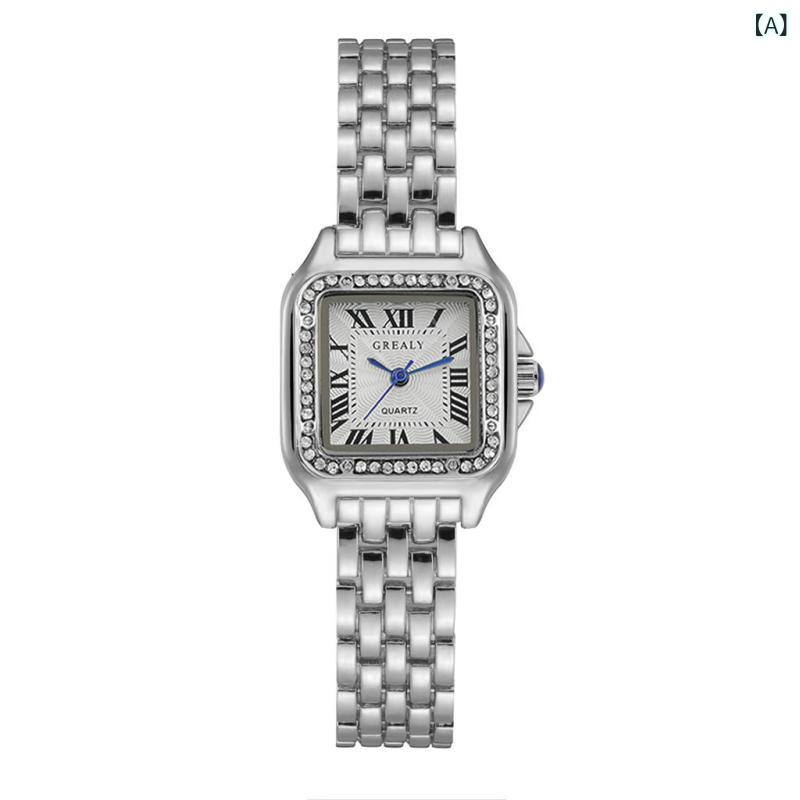 腕時計 レディース ステンレス製 クォ A:ラインストーン付きシルバー B:ラインストーン付きゴールド C:シルバー D:ゴールド