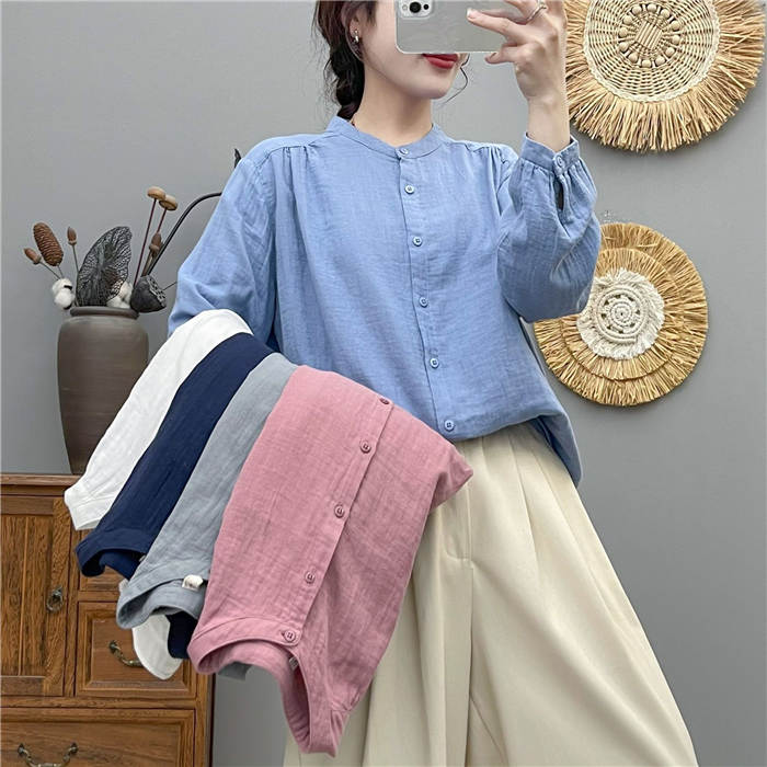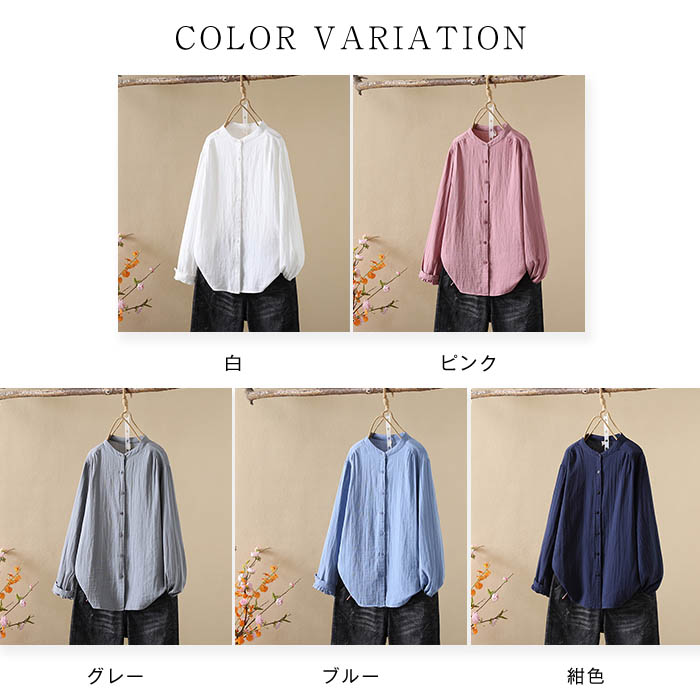 クーポンで2180円 バンドカラー ガ レディースファッション 続々登場 白 グレー 紺色 ブルー ピンク S M L