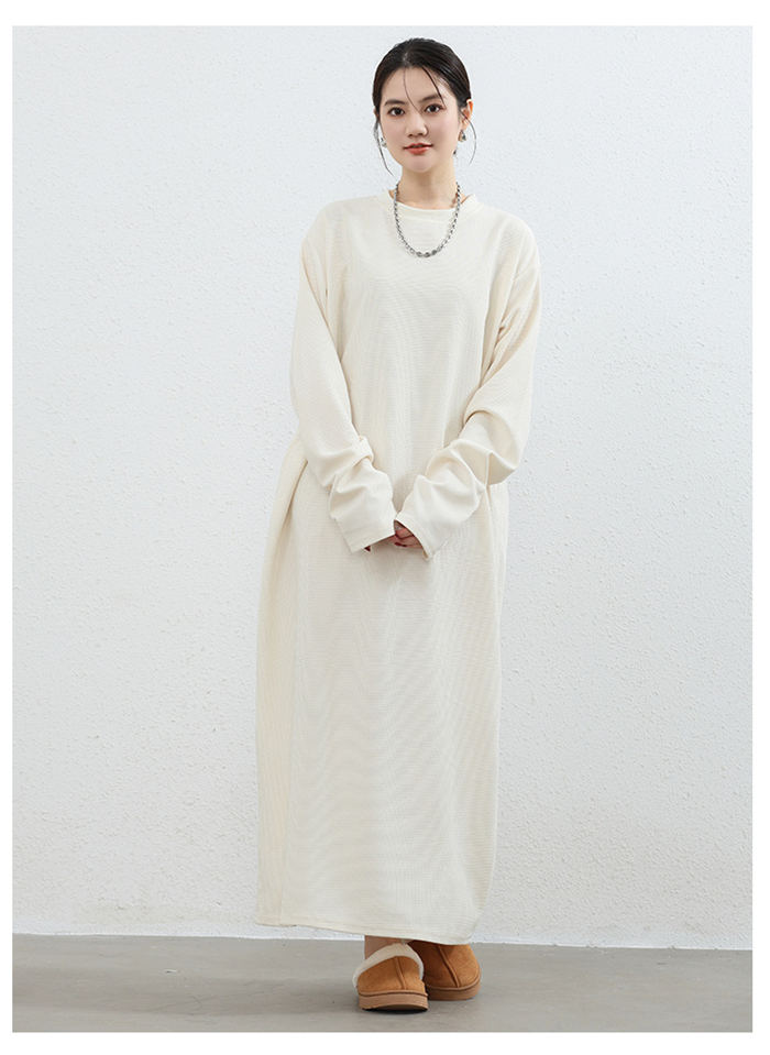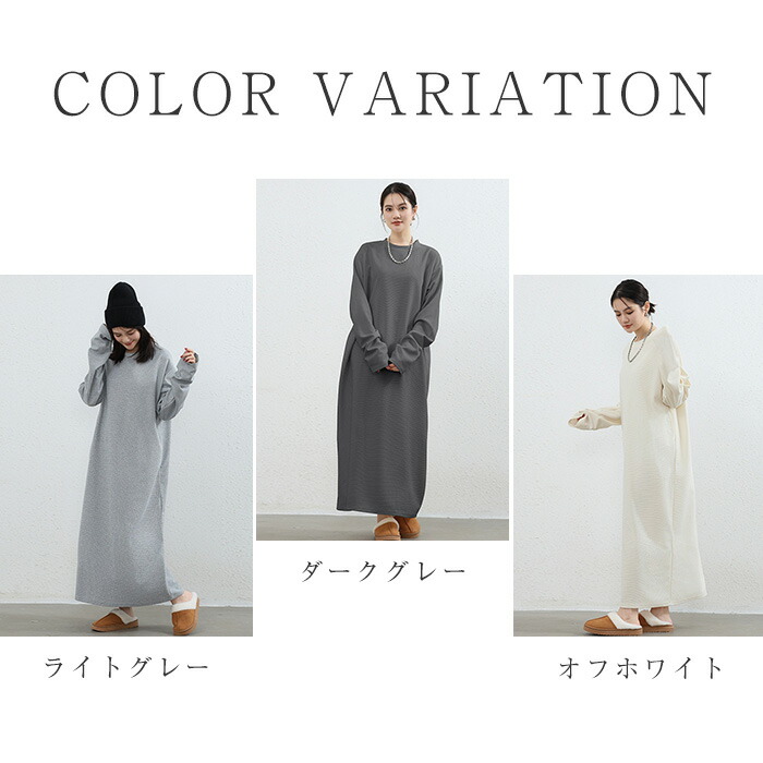 スウェットワンピース ワッフル レディ ワンピース 新登場! オフホワイト ライトグレー ダークグレー