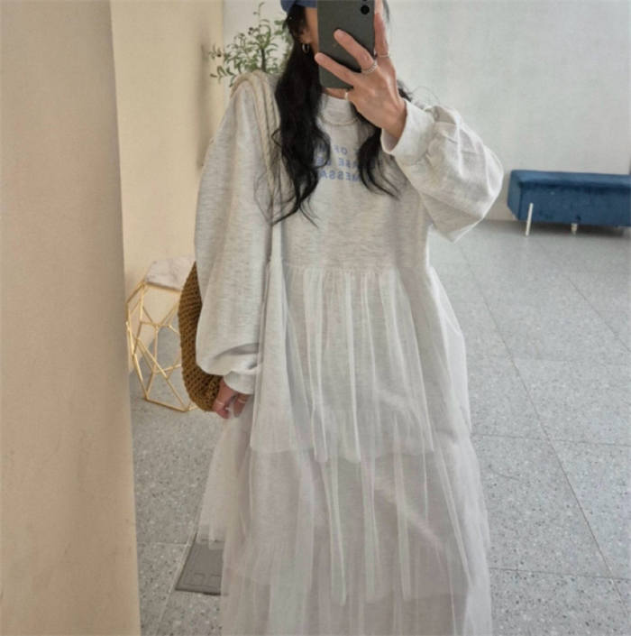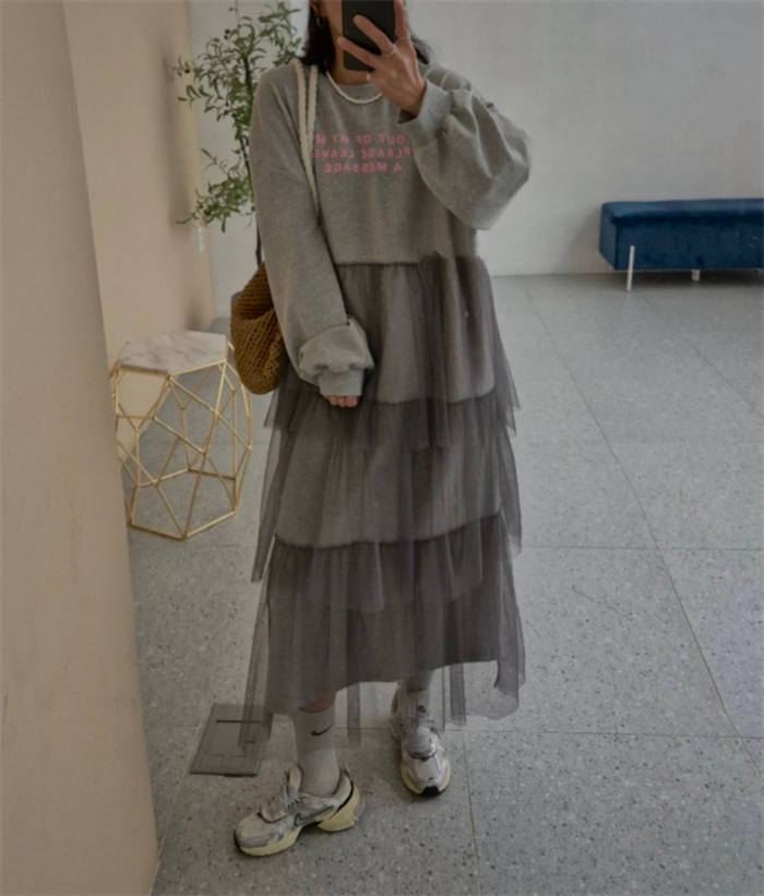チュール ワンピース レディース 春 レディースファッション 超目玉商品 ライトグレー ダークグレー ブラック