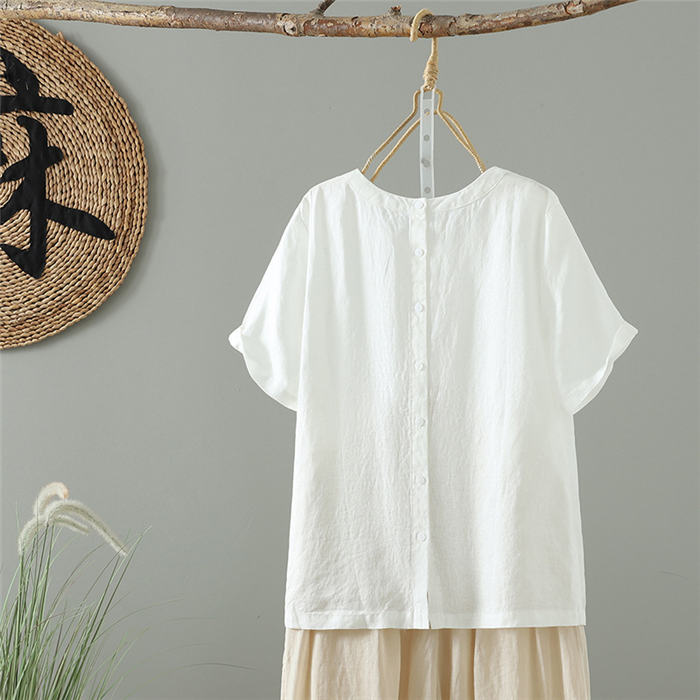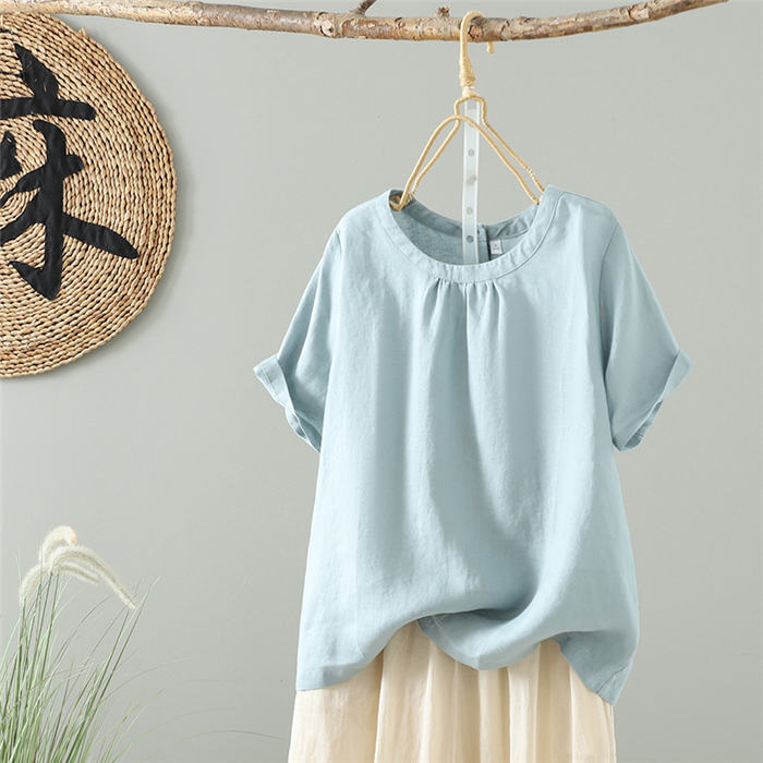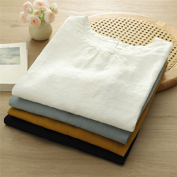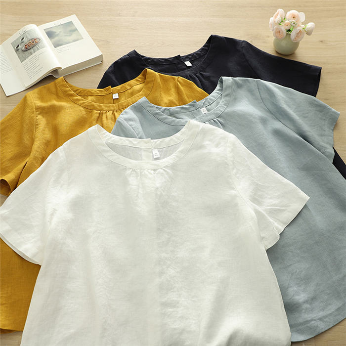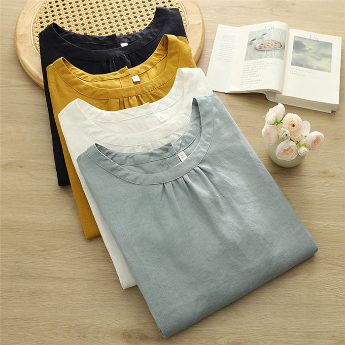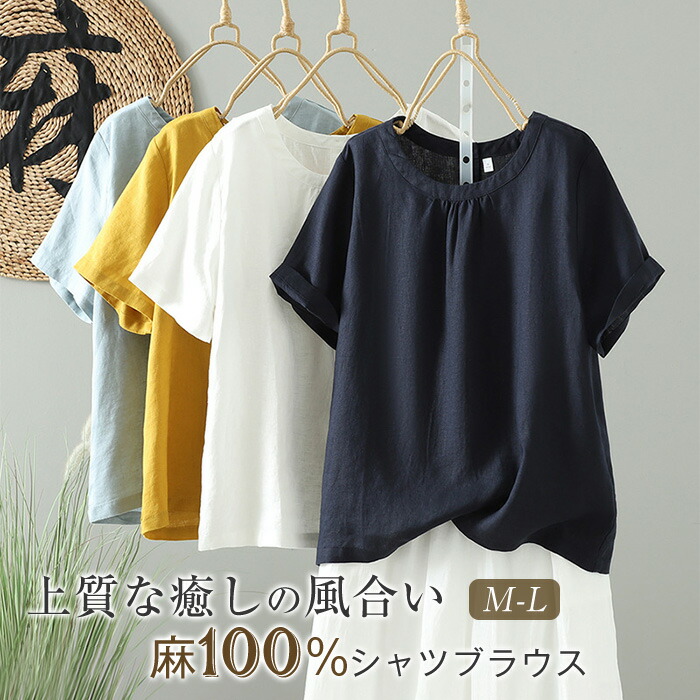 リネン100% シャツ ブラウス レデ トップス シャツ ブラウス 続々登場 黄色 白 紺色 ブルー M L