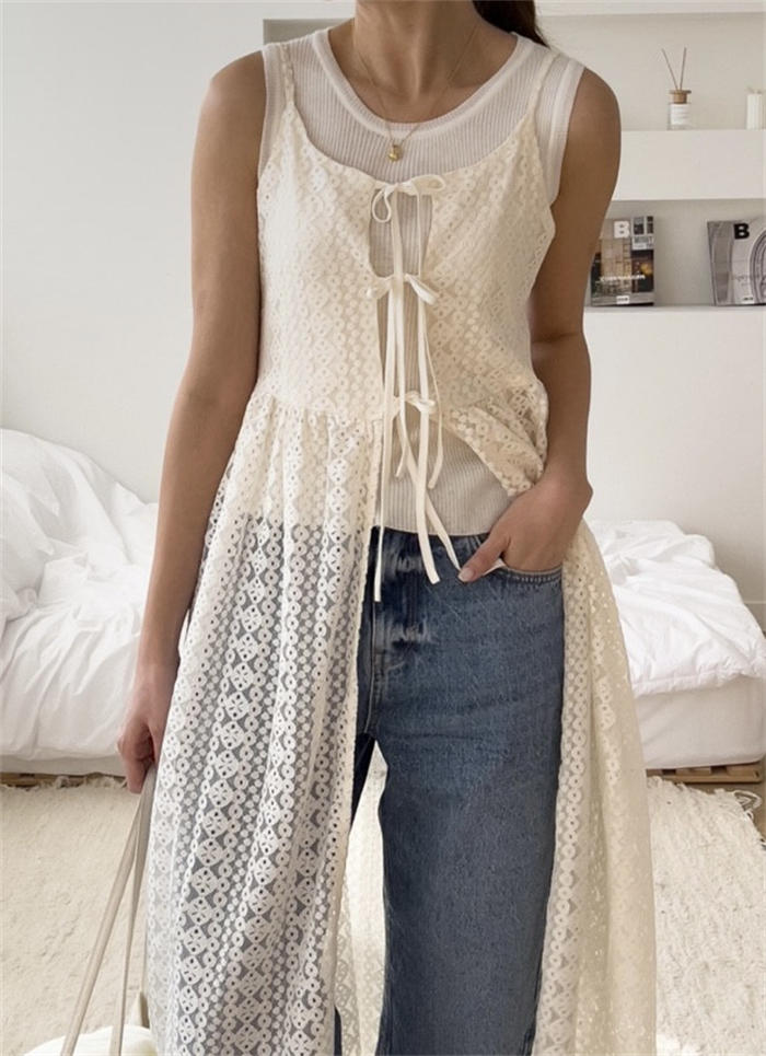 レイヤード レース キャミワンピース ワンピース 続々登場 オフホワイト ブラック