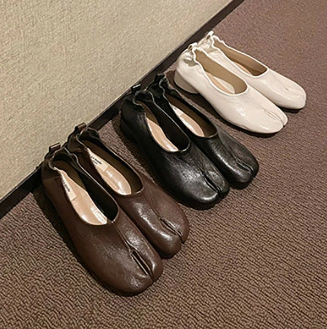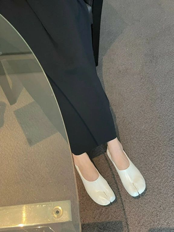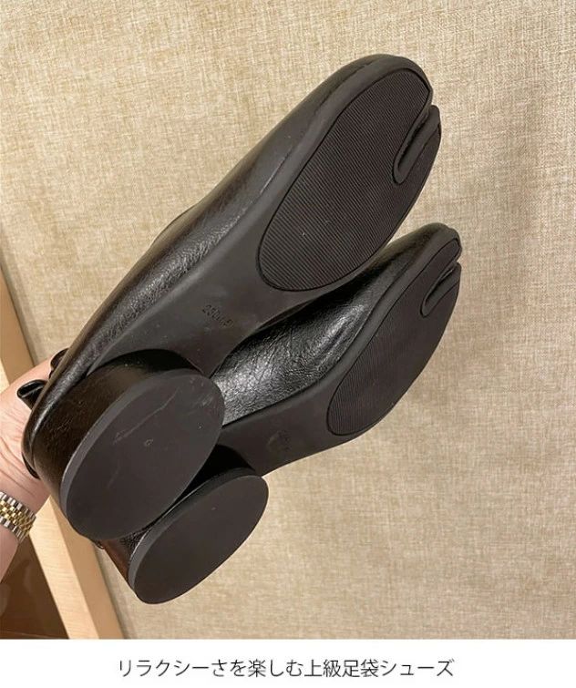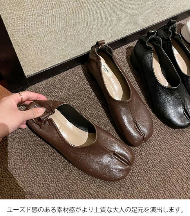 足袋パンプス先割れシューズ 靴 光沢感 靴 新作 ブラック オフホワイト ブラウン 35(内寸22.5cm) 36(内寸23cm) 37(内寸23.5cm) 38(内寸24cm) 39(内寸24.5cm)