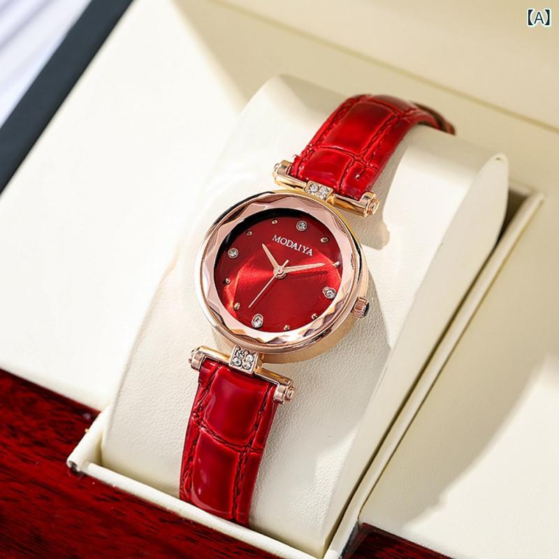 腕時計 レディース スリム フェイクレ A:赤 B:緑 C:白 D:黒 E:赤帯バラ面