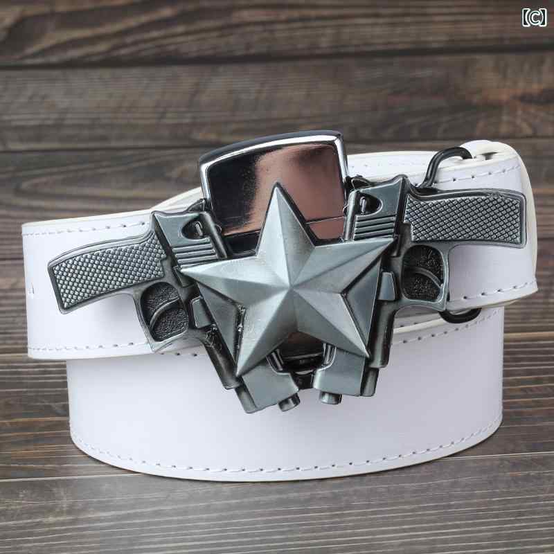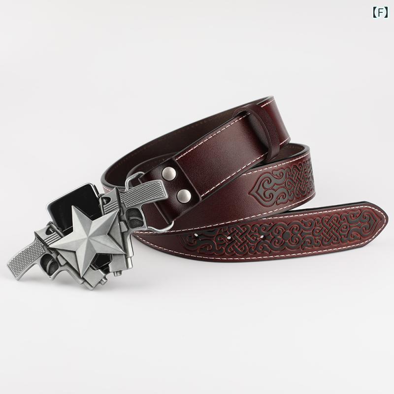 ベルト ウエスタン PUレザー ロック バッグ 小物 ブランド雑貨 新作 A:五芒星バックル 黒ベルト P B:五芒星バックル ブラウンベル C:五芒星バックル ホワイトベル D:エンボス加工施したブラックス E:ブラウン2層牛革エンボス加工 F:エンボス加工施したレッドブラ 100cm 105cm 115cm 120cm 125cm 130cm