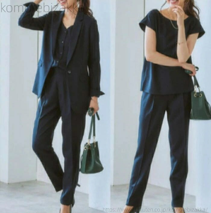レディース 3点セット 大人 パンツ スーツ セットアップ 3 4点セット 豊富な品揃え ネイビー ベージュ ブラック S M L XL 2XL 3XL 4XL 5XL