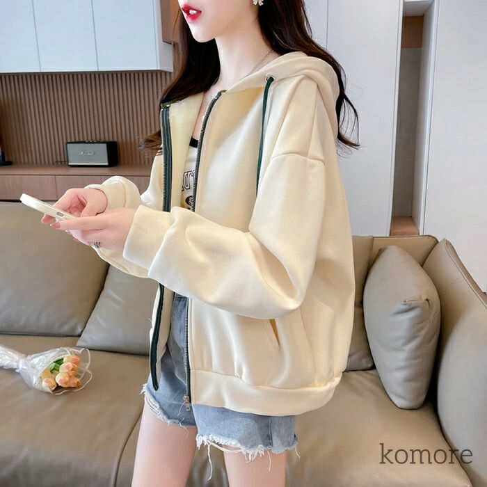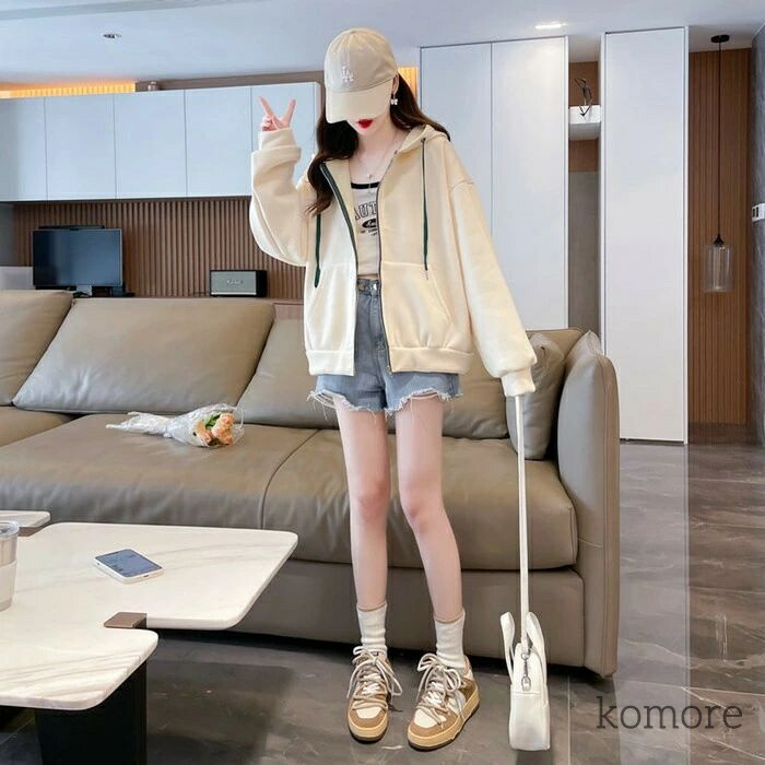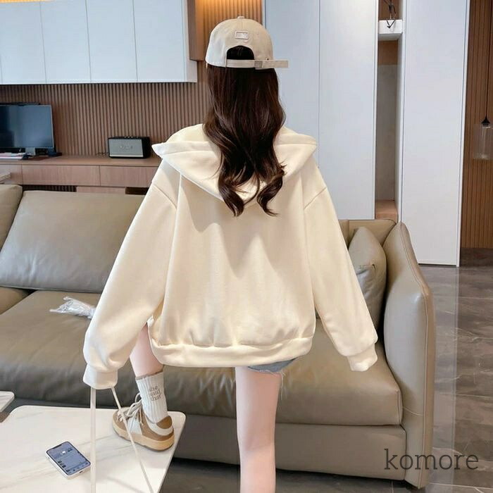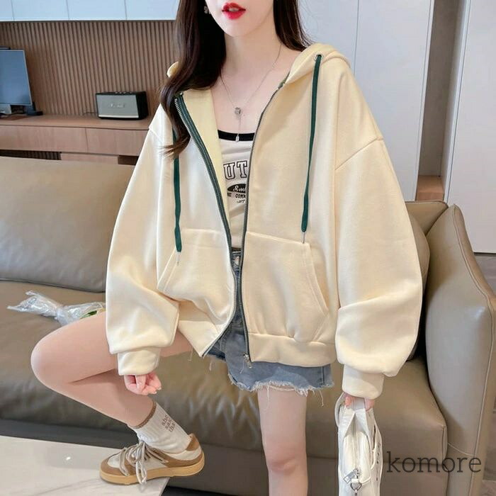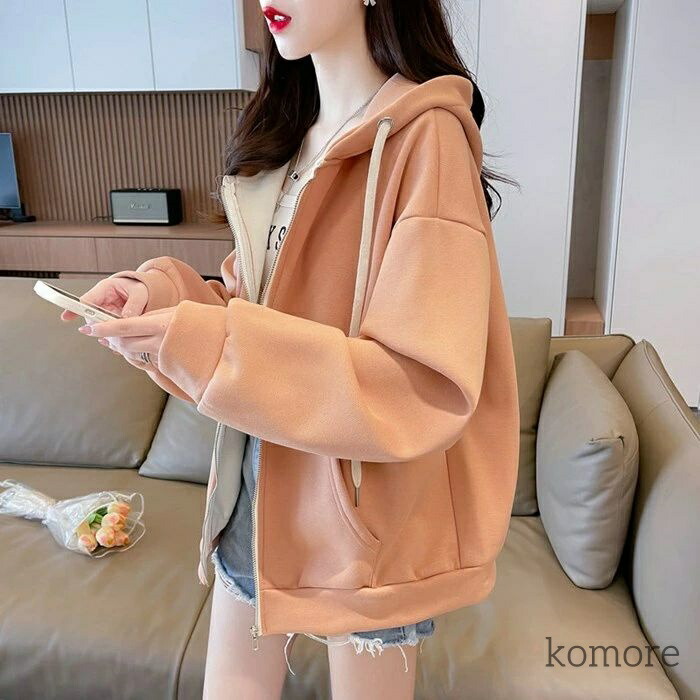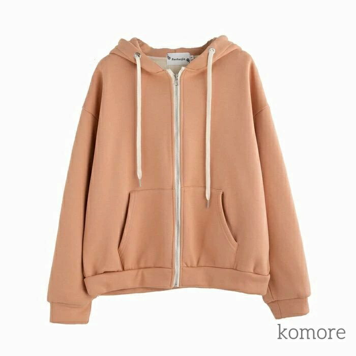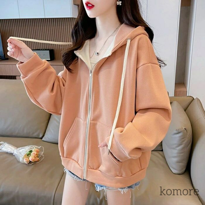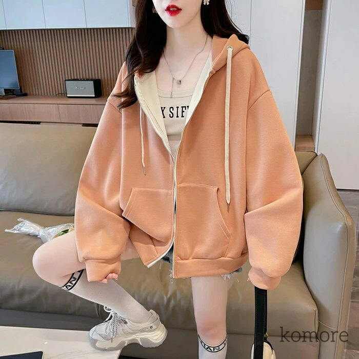 パーカー レディース フード付き ジッ トップス パーカー 新作 杏色 オレンジ