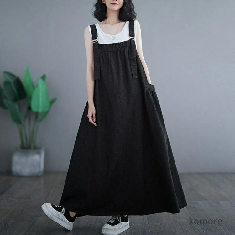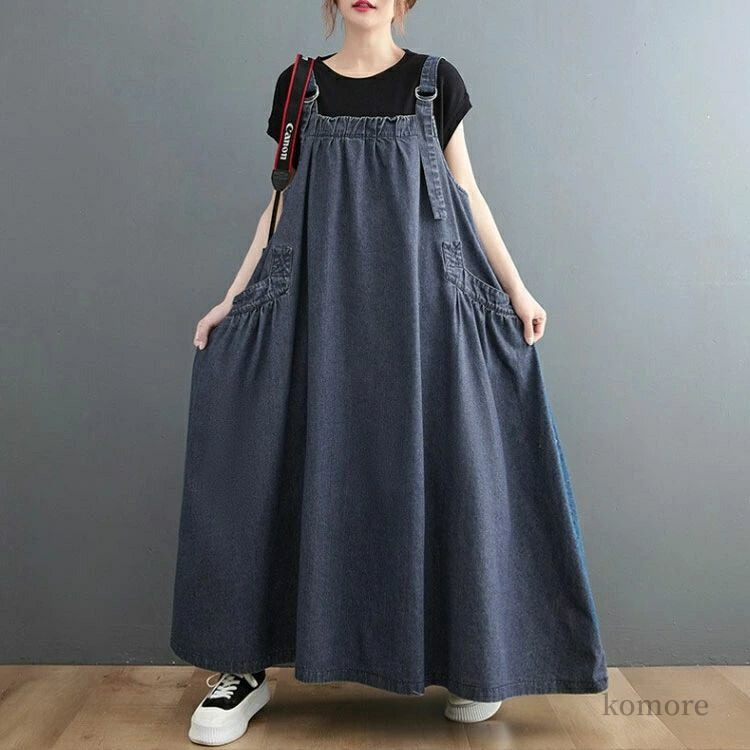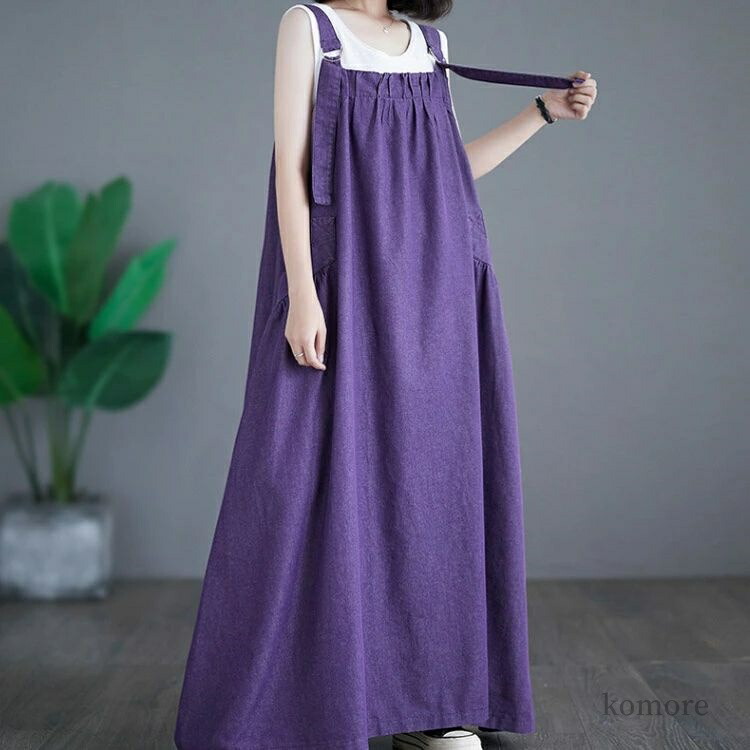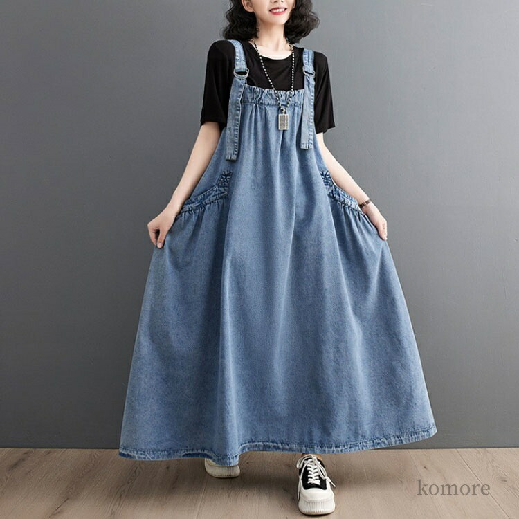 ジャンパースカート 体系カバー ゆった ワンピース 超目玉商品 デニム ブルー ブラック パープル グリーン ブラウン ネイビー539 ブルー539 ブラック539 ブラウン575 グリーン575 ヴィンテージブルー M L XL 2XL