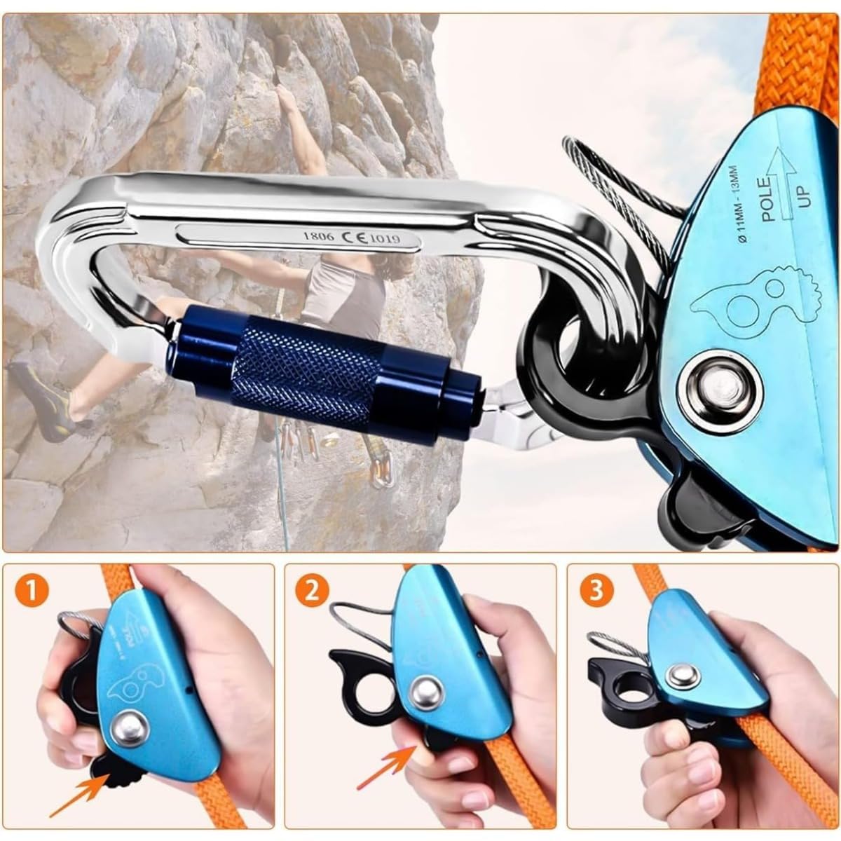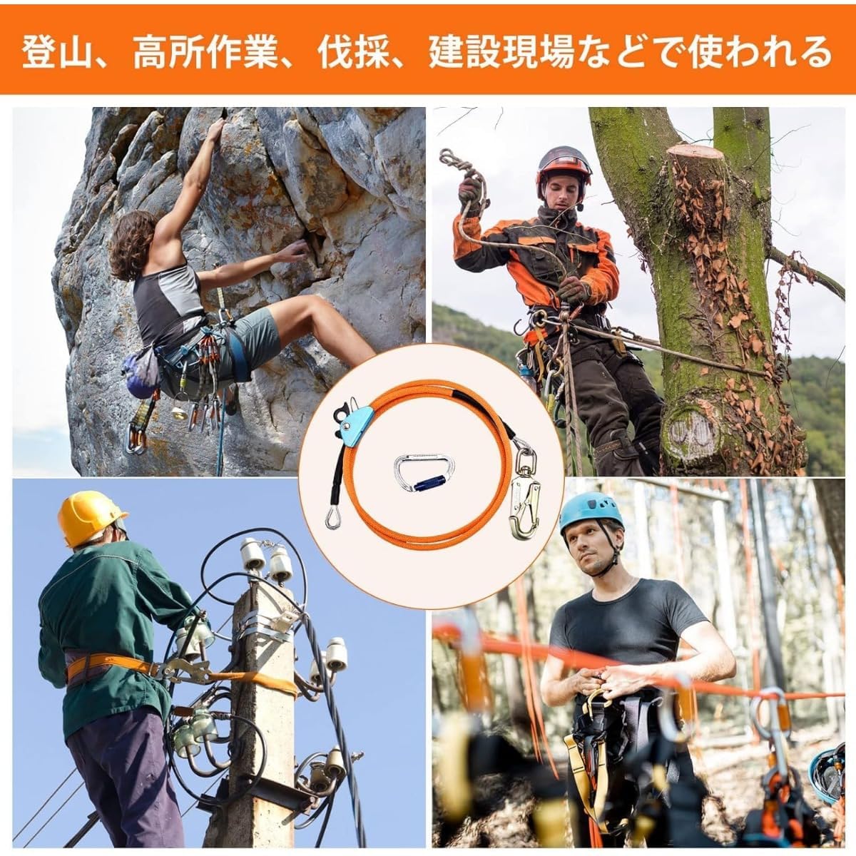 スチールコア安全ロープ 鋼線コア 安全ロープ 伐採 アーボリスト 安全帯 フリップラインキット 柱上作業用安全帯 林業用安全帯 超軽量アルミ合金 木登り器具 安全確保 落下 カラビナとロープグラブ付き