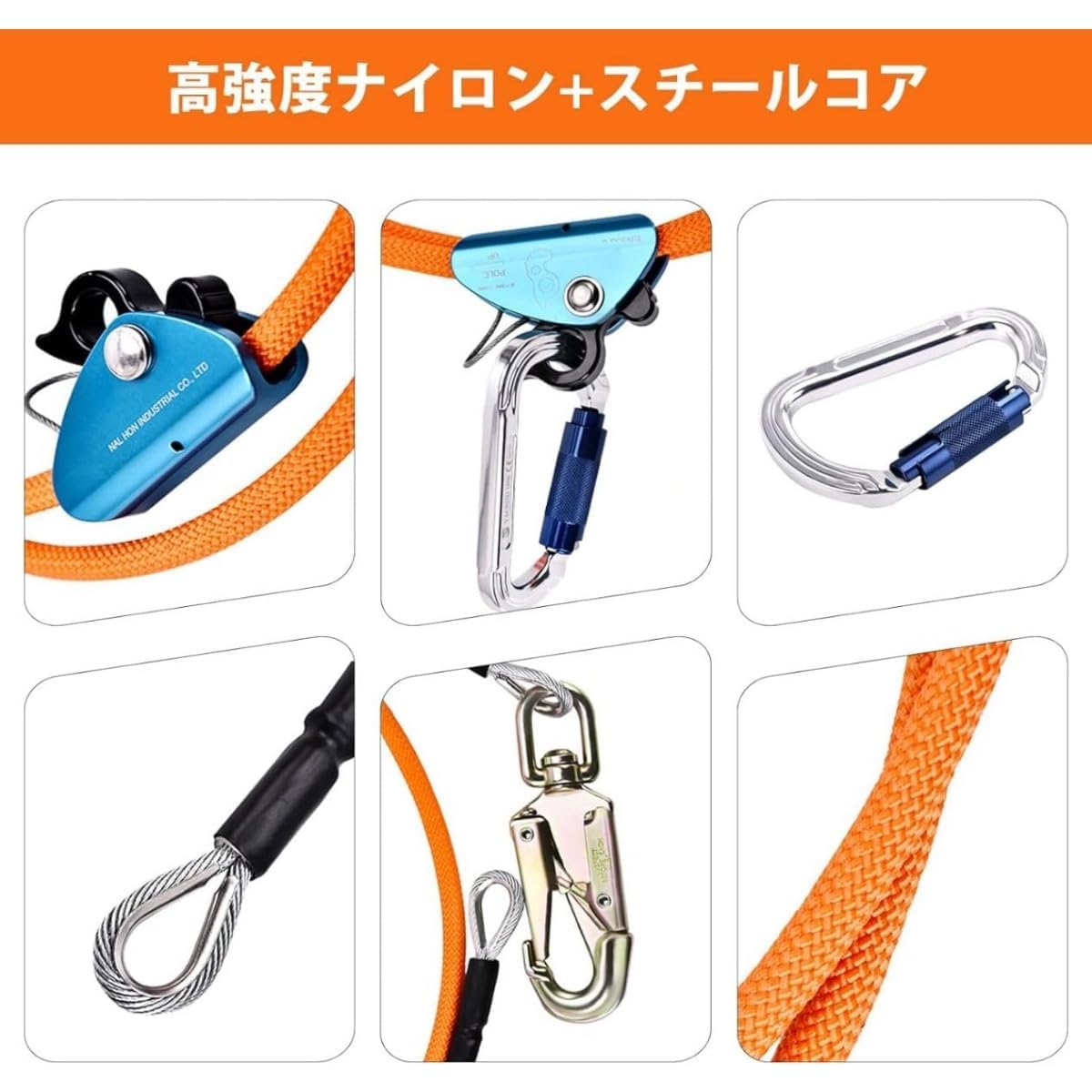 スチールコア安全ロープ 鋼線コア 安全 12*2.4m 12*3m 12*3.6m 12*4m 16*3.6m 16*4.2m 16*4.8m