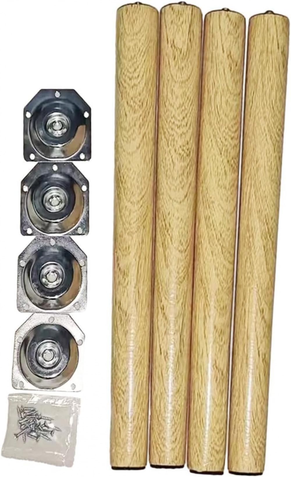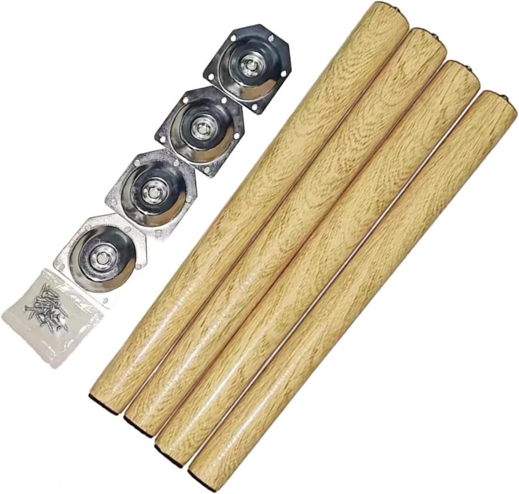 木製家具脚 4本セット|耐久性プレート ネジ付き|デスク ナイトスタンド対応|高さ60cm|DIY家具リフォーム 交換用部品 テーブル