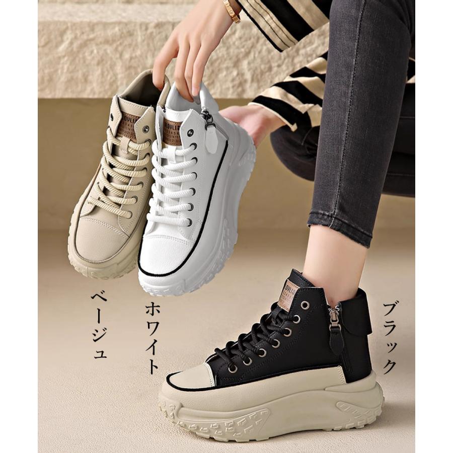 ハイカットスニーカー レディース 厚底 レディース靴 ウォーキングシューズ 早い者勝ち ベージュ ブラック ホワイト 22.5cm(35) 23.0cm(36) 23.5cm(37) 24.0cm(38) 24.5cm(39)