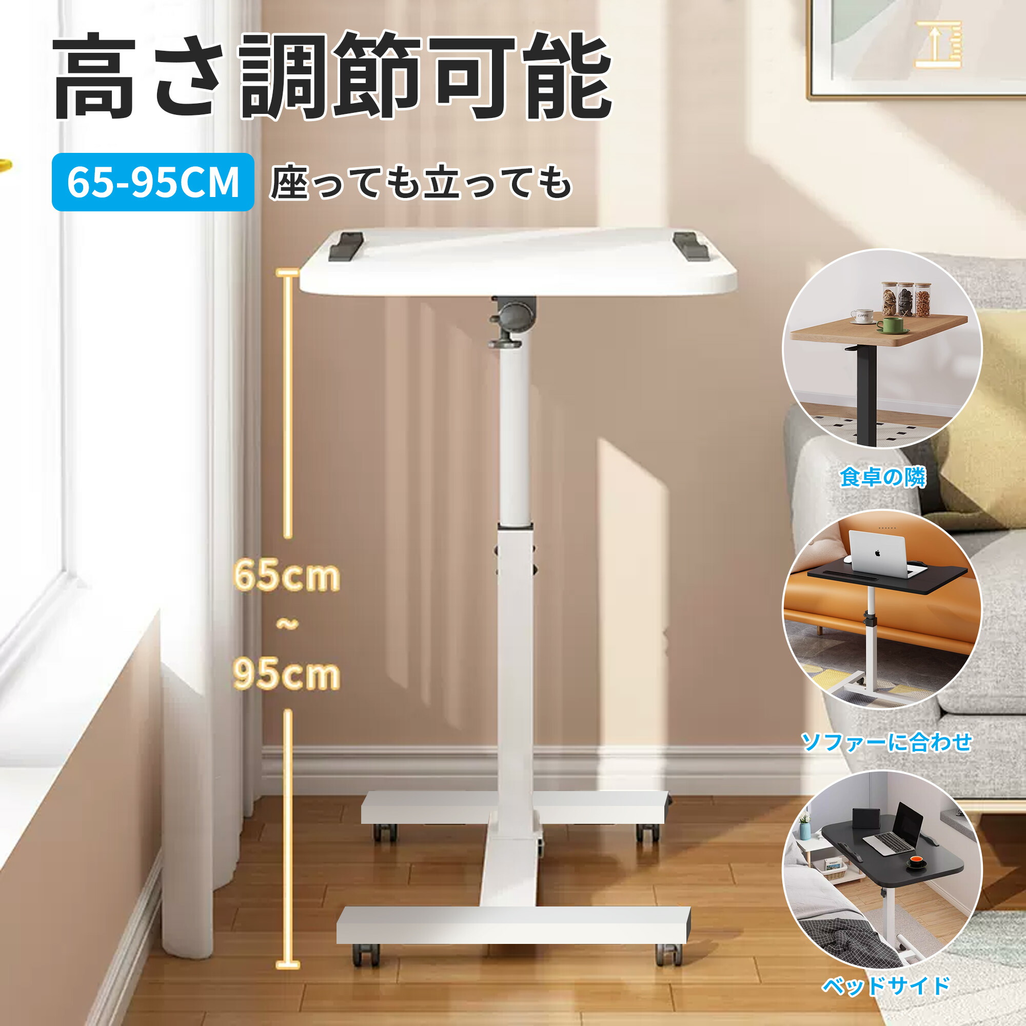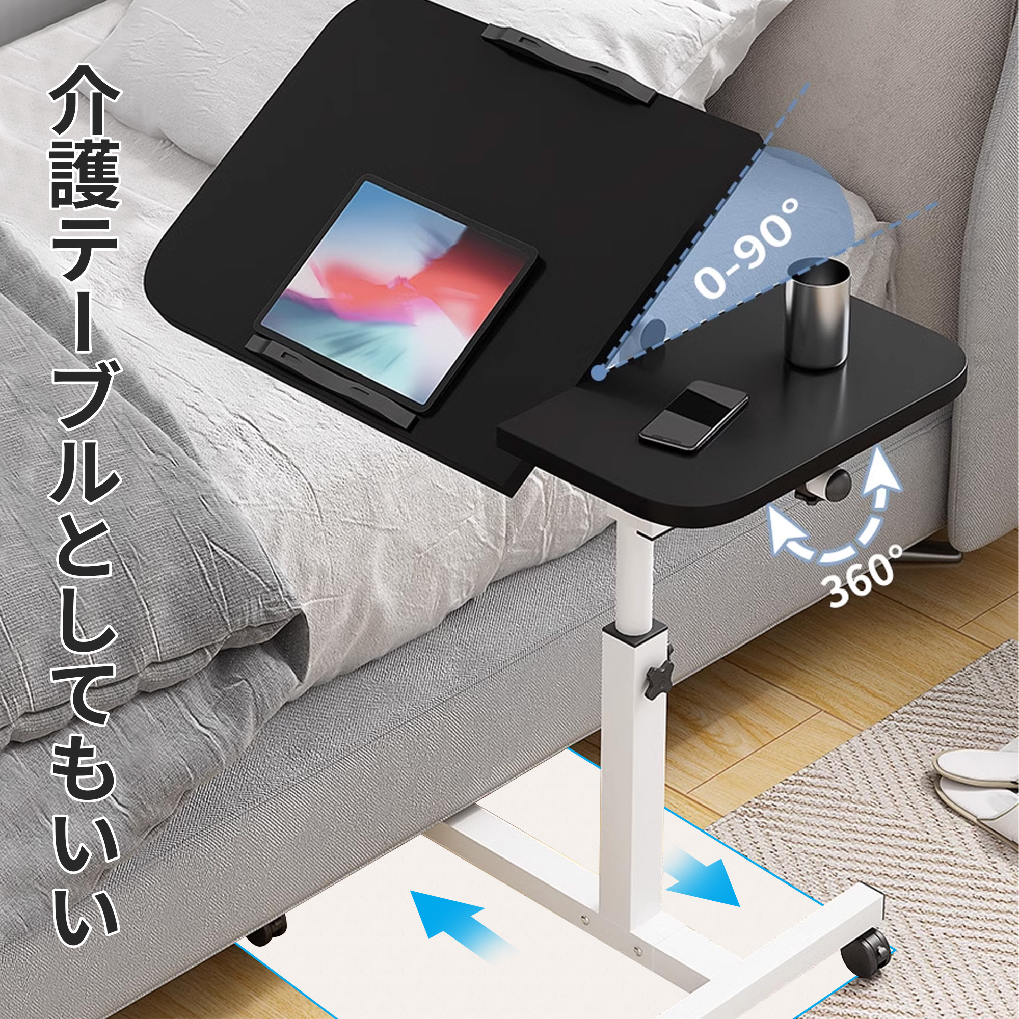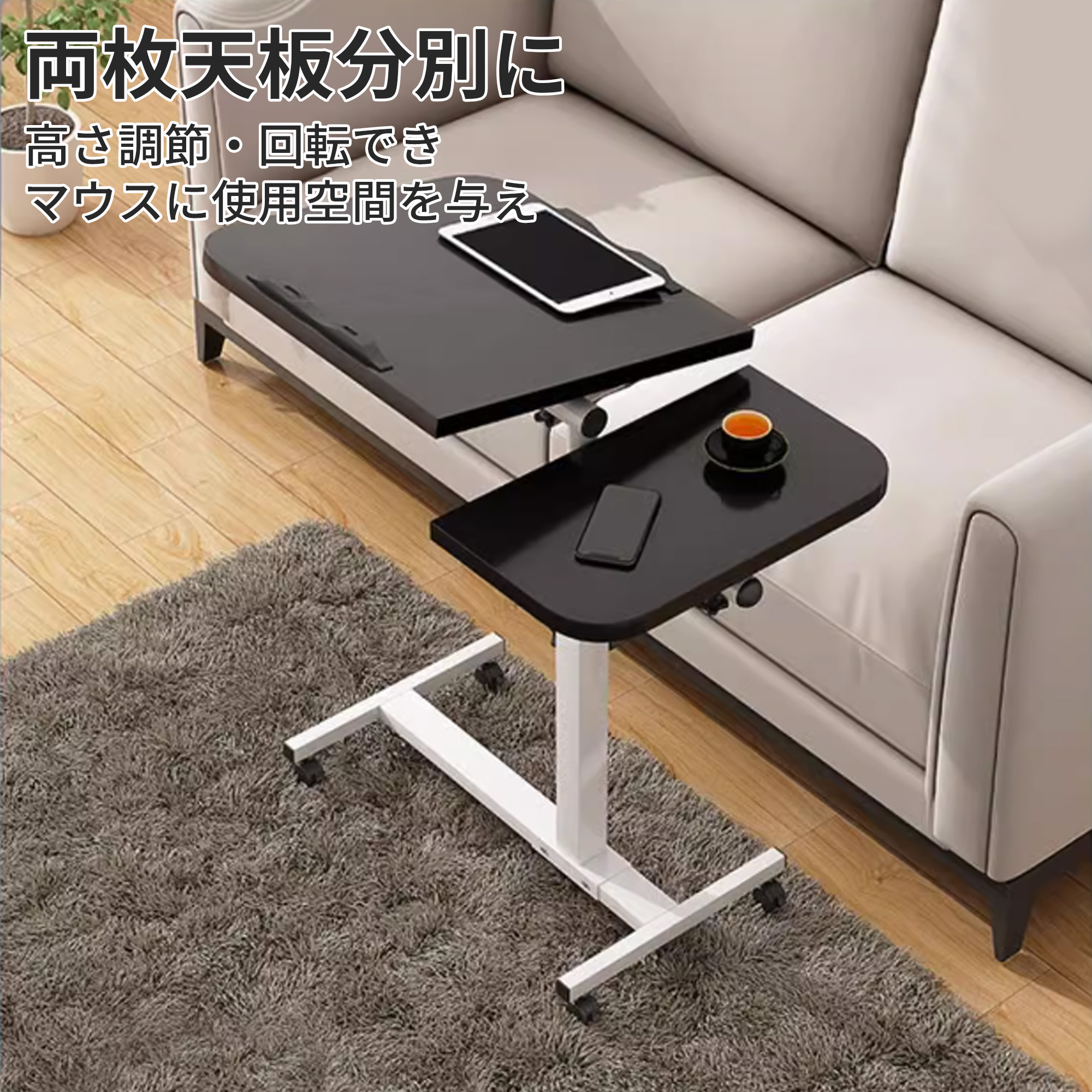 昇降式 サイドテーブル ベッドサイドテ ブラック ホワイト