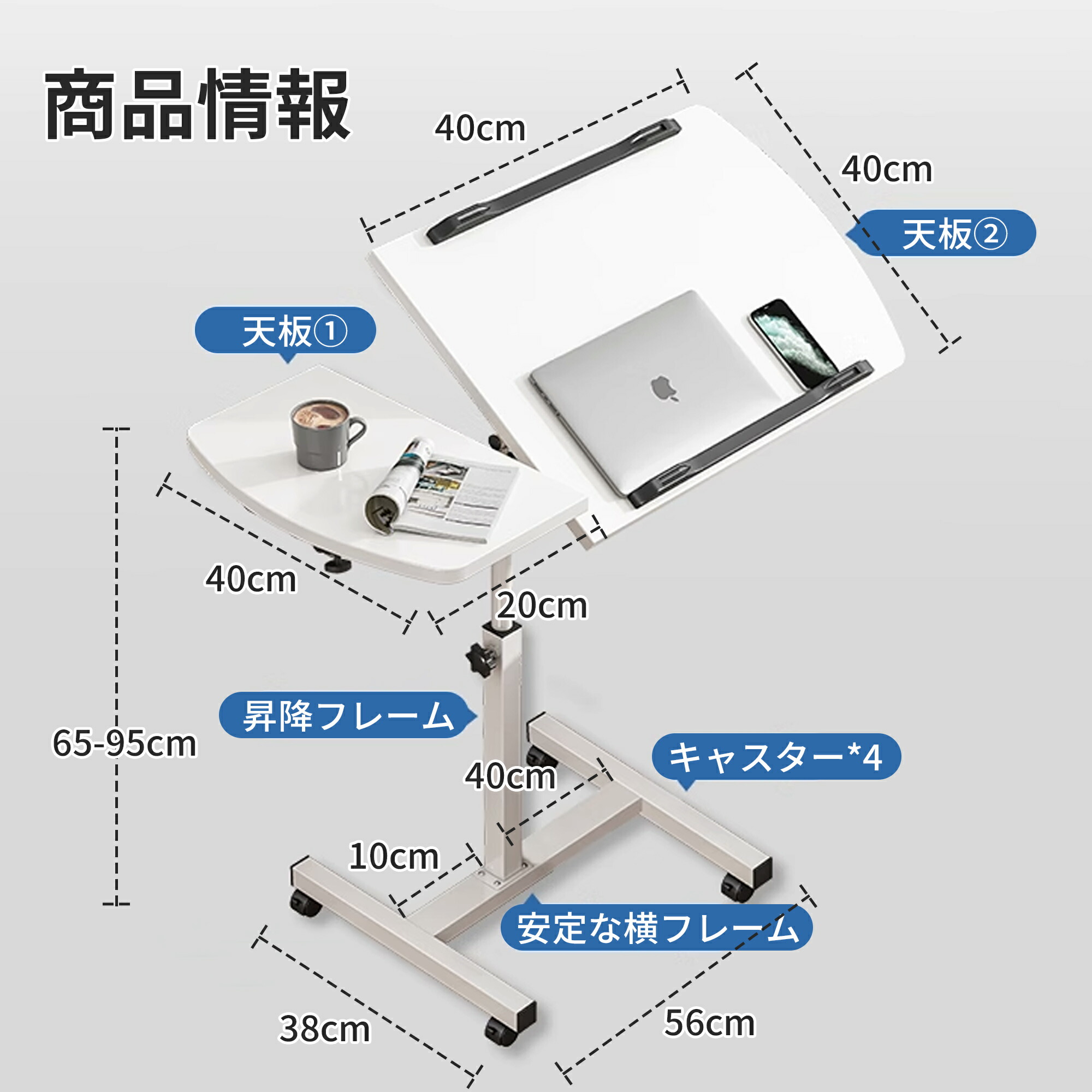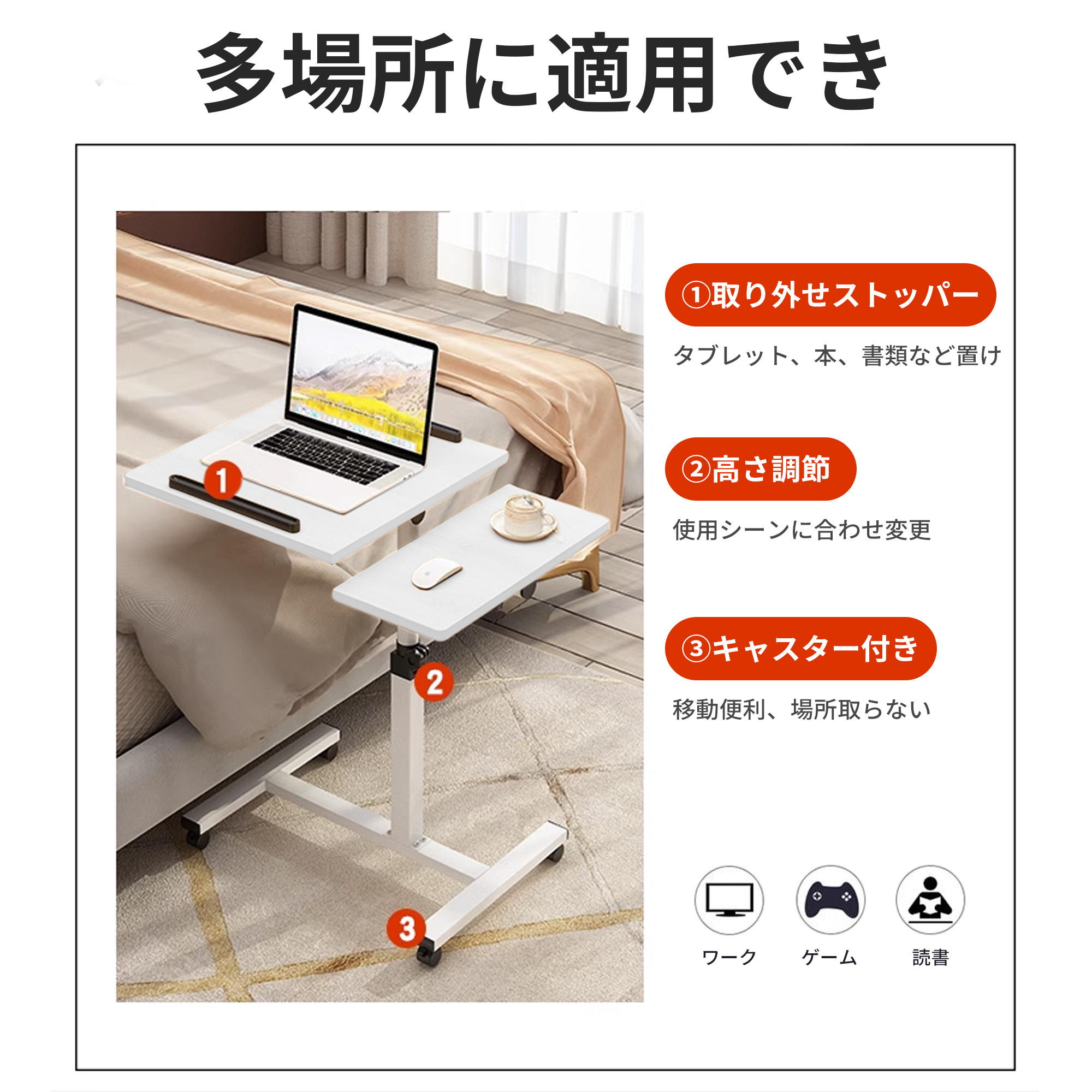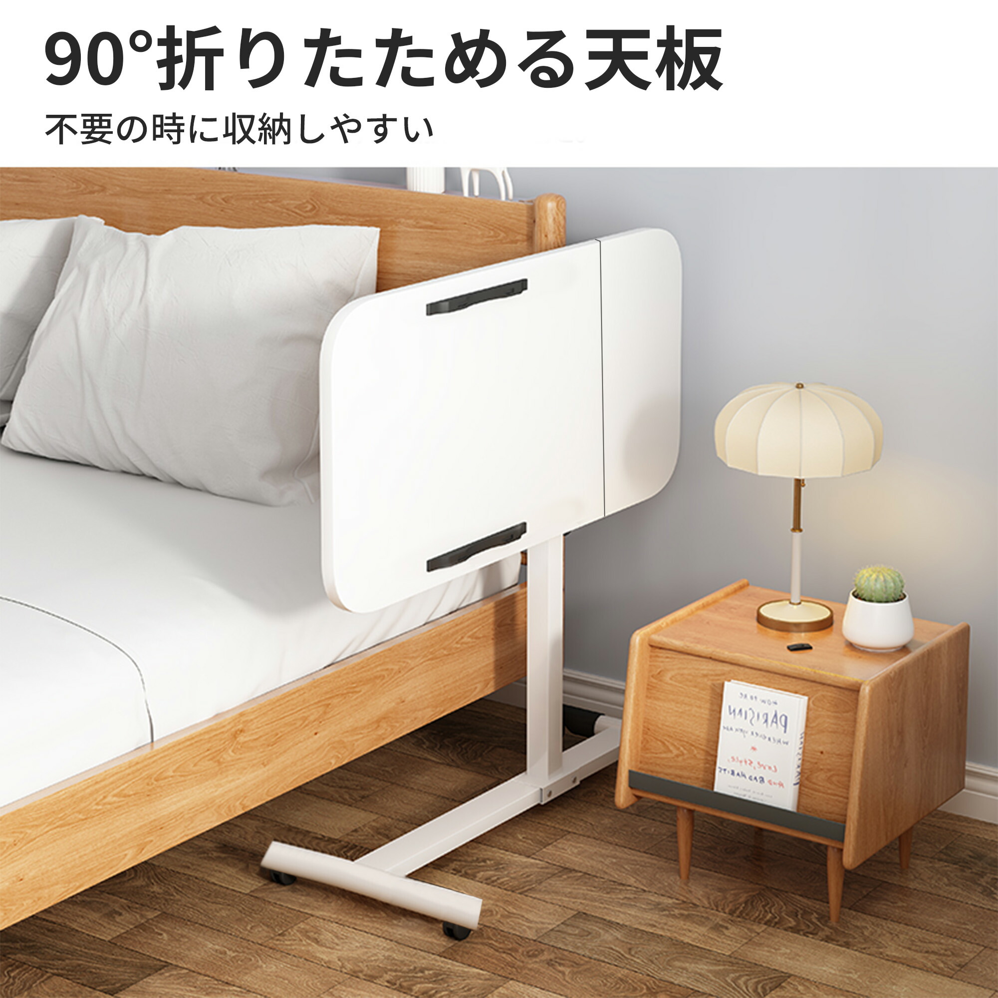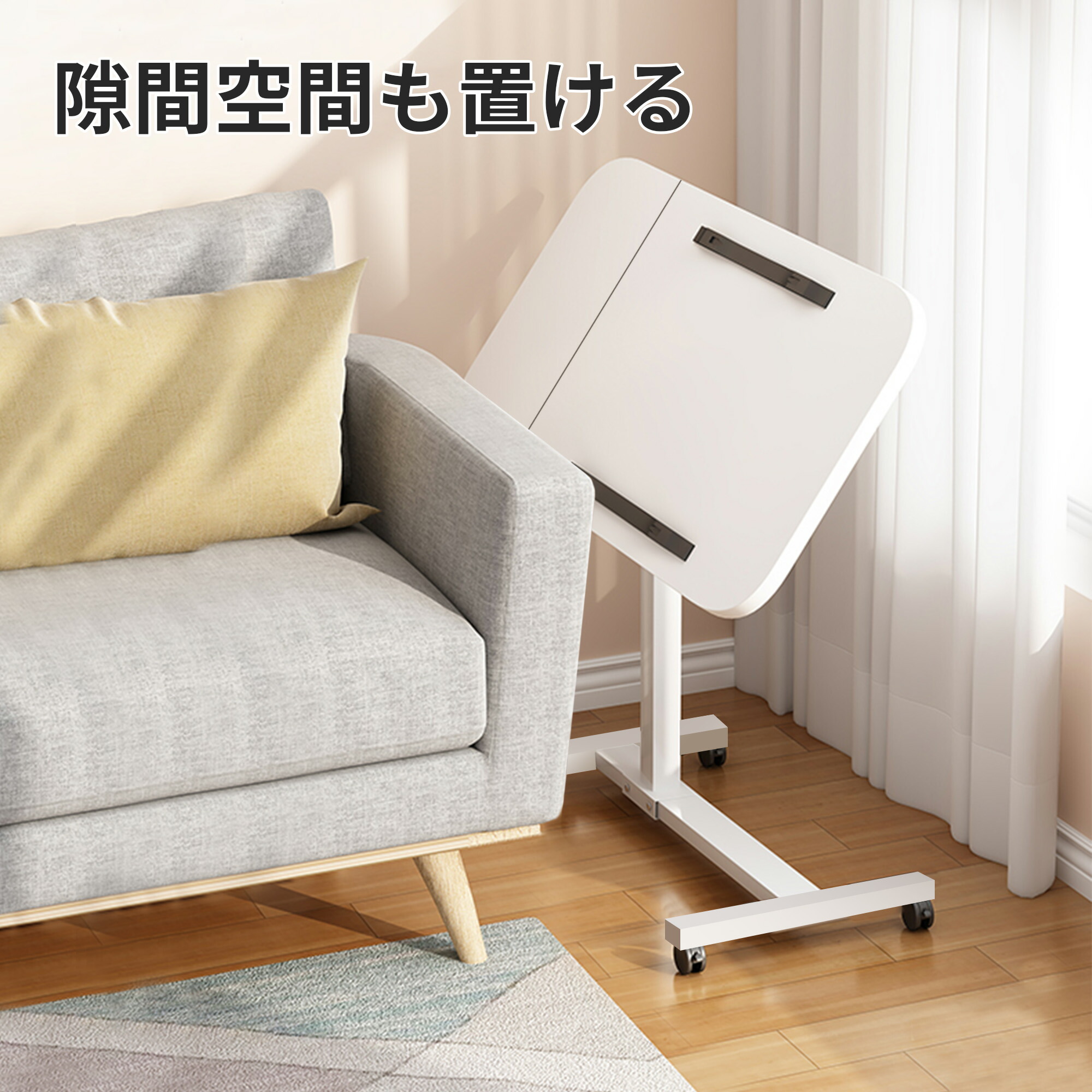 昇降式 サイドテーブル ベッドサイドテ ブラック ホワイト