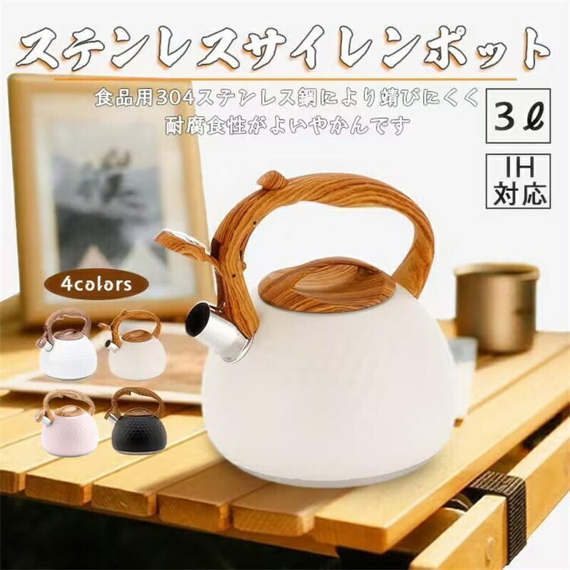 ステンレス製 やかん 笛吹きケトル 3 ブラック ホワイト ベージュ