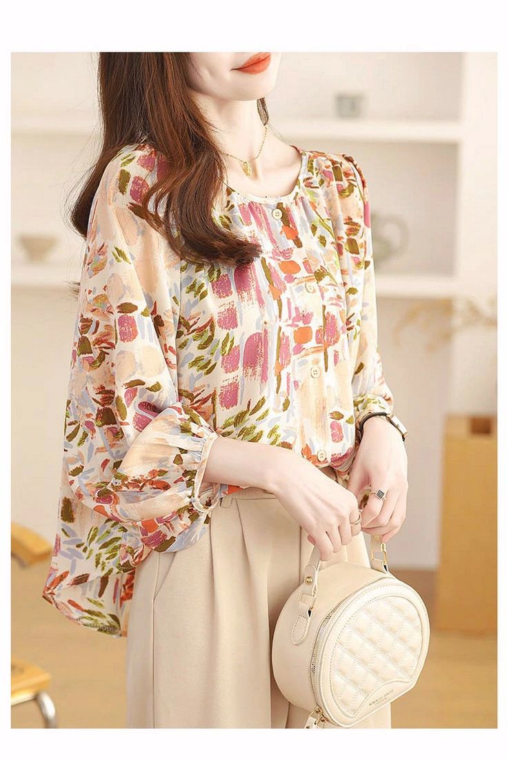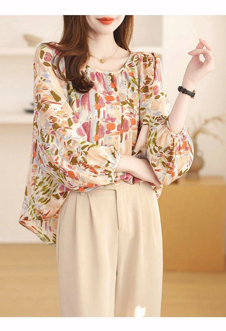 シフォンブラウス シアーブラウス ボリューム袖