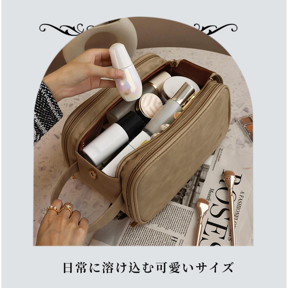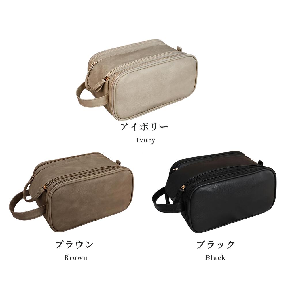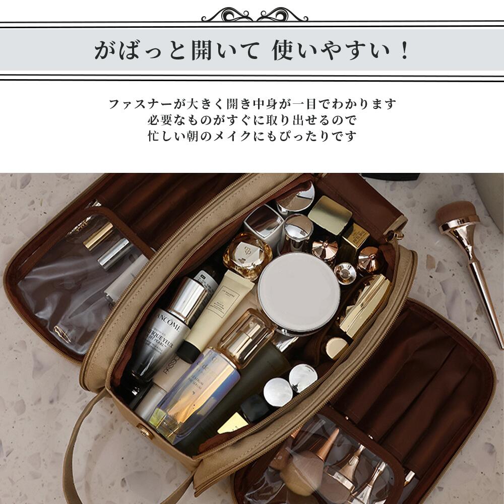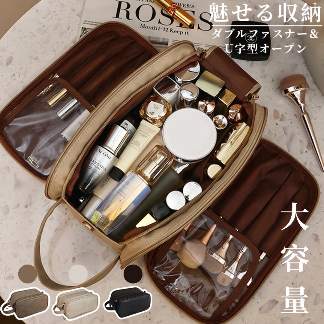 大容量メイクポーチ 化粧ポーチ 旅行用 ブラック アイボリー ブラウン