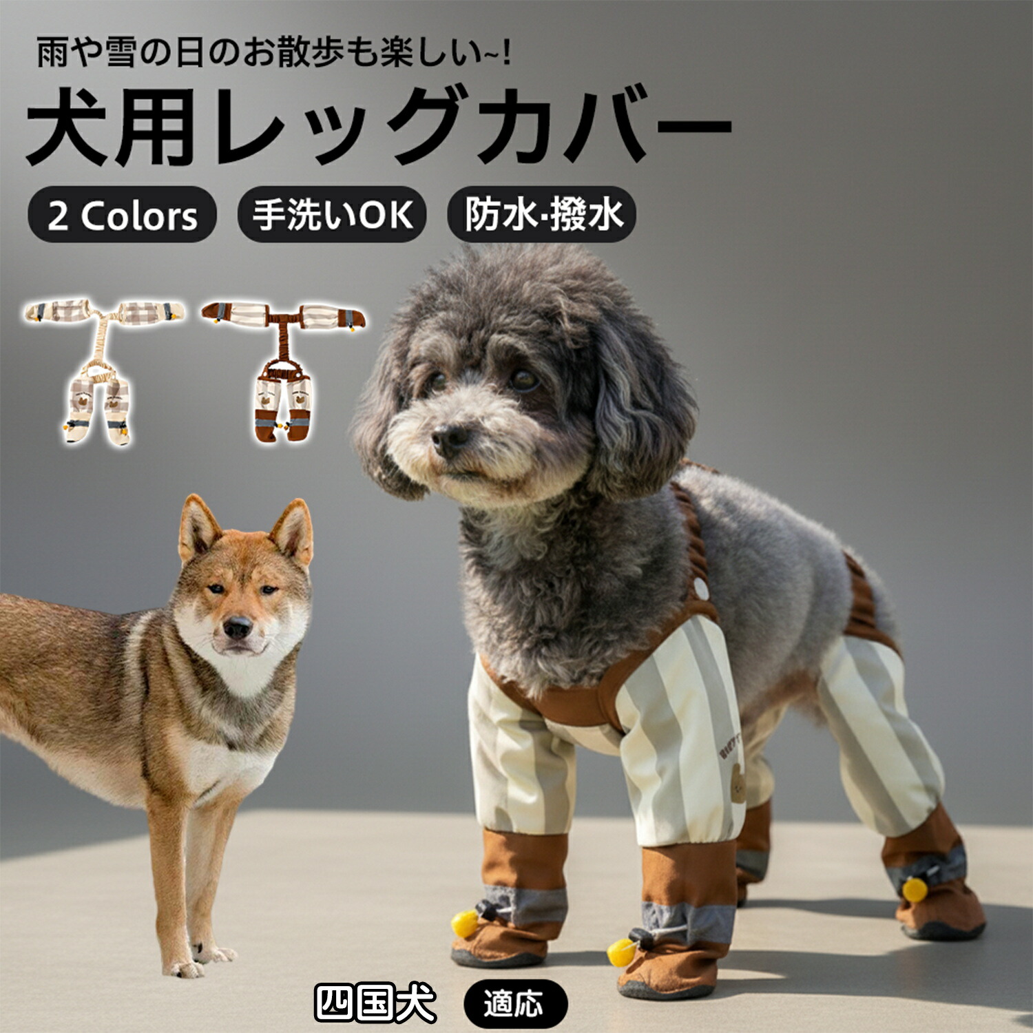 四国犬 犬用 レッグカバー サスペンダー付き レインパンツ 犬 ブーツ 防水 滑り止め 脱げない 肉球保護 汚れ防止 雨 雪 対策 散歩 お出かけ 小型犬 軽量 犬用シューズ 中型犬