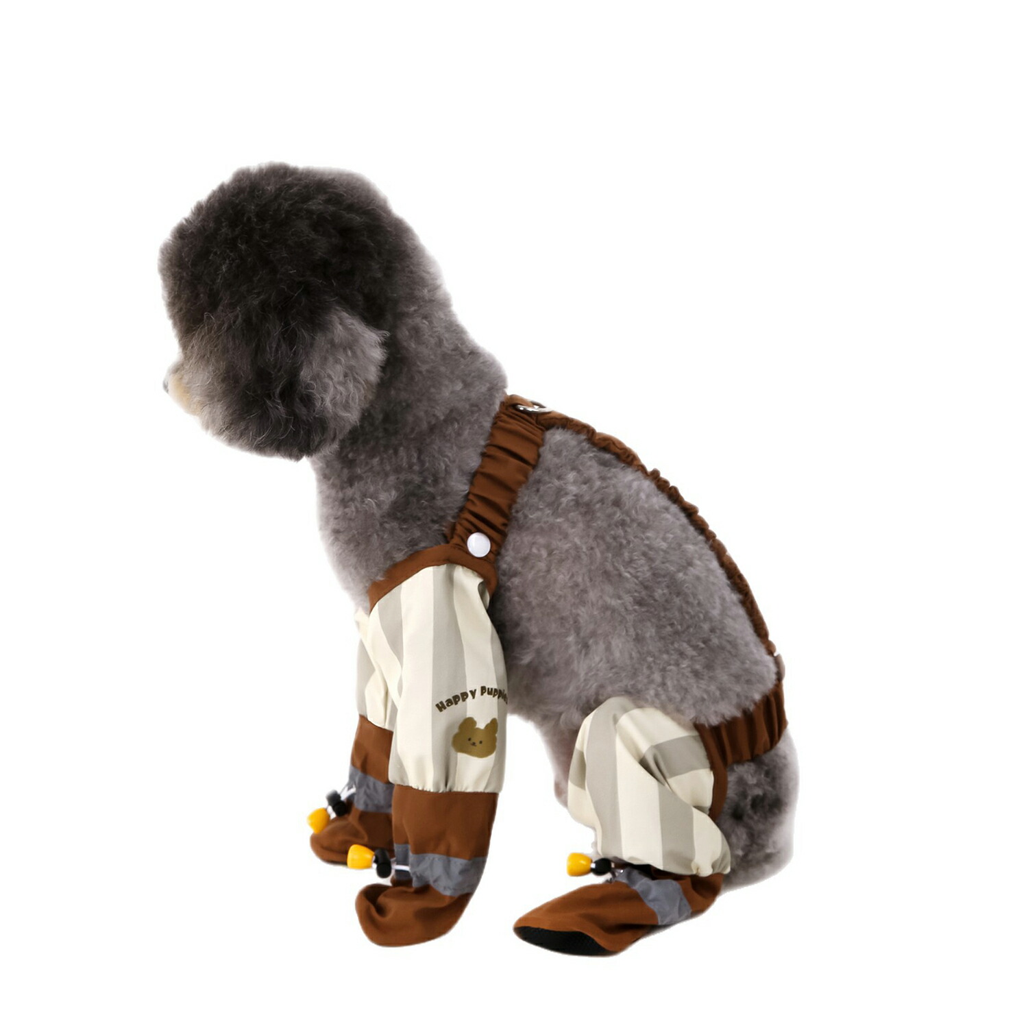 脚部までしっかりカバーするオーバーオールタイプで、被毛や皮膚を汚れから守ります。
