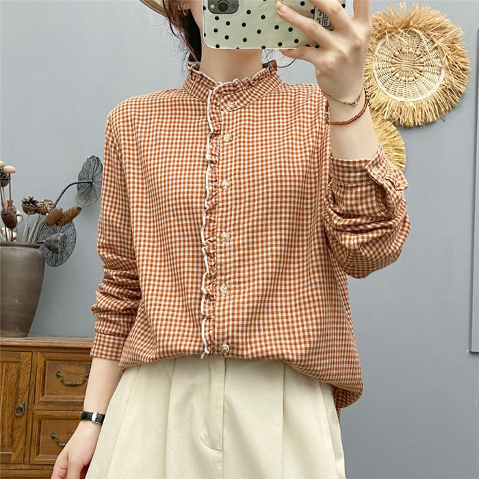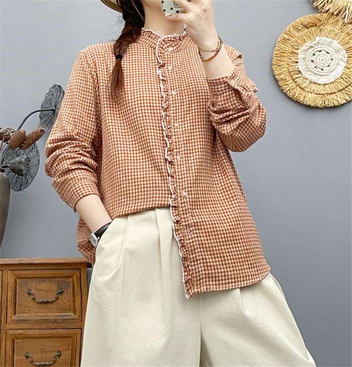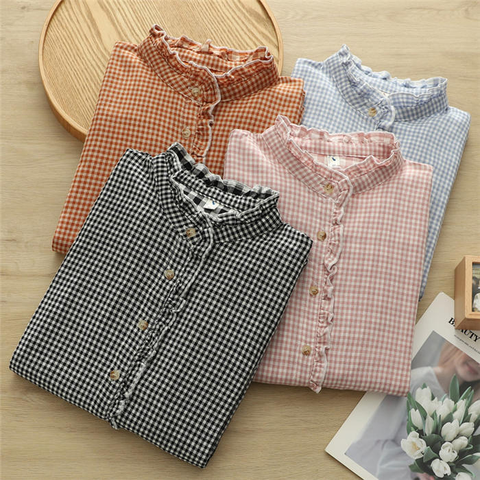 ルガーゼ 2重ガーゼ カジュアル ナチ トップス シャツ ブラウス 超目玉商品 黒 ブルー ピンク オレンジ S M L