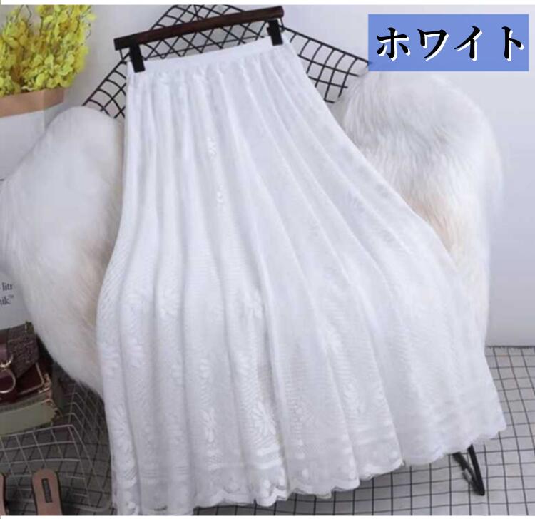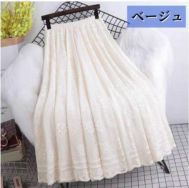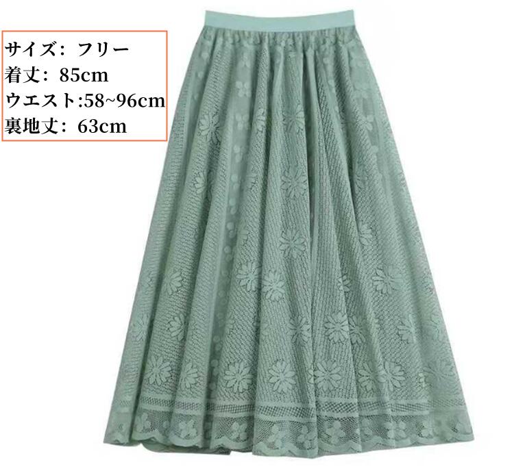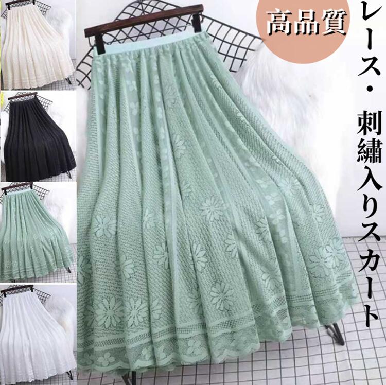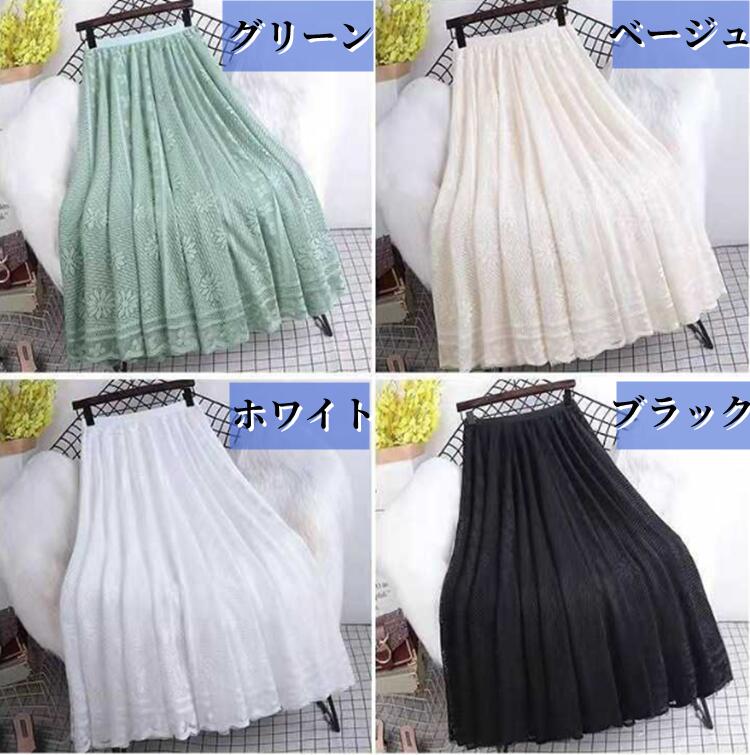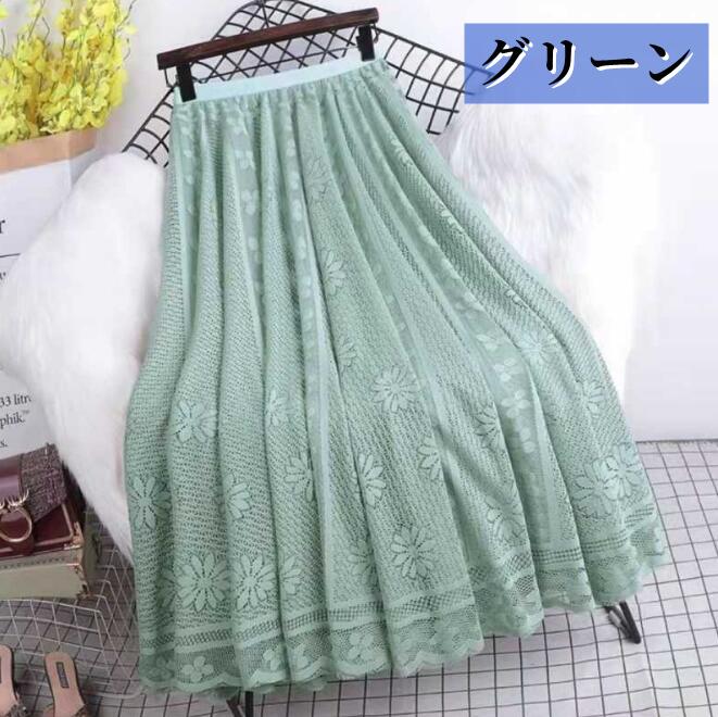 レディース レーススカート 薄手 ロン レディースファッション 人気 ブラック グリーン ベージュ ホワイト