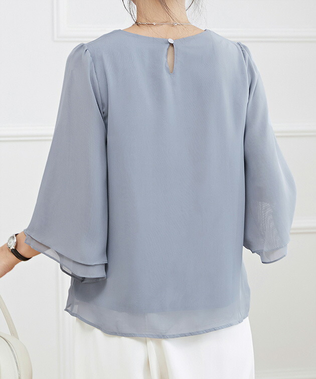 シフォンブラウス シアーブラウス ボリューム袖