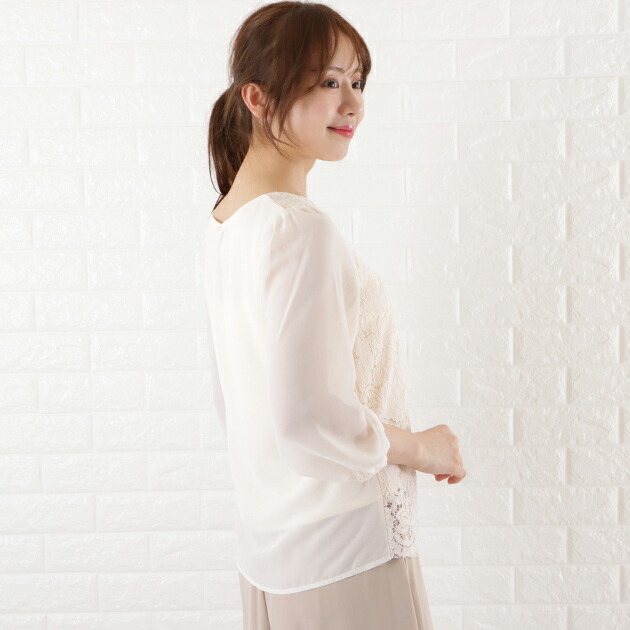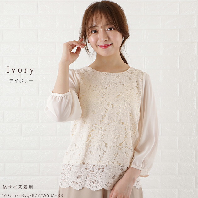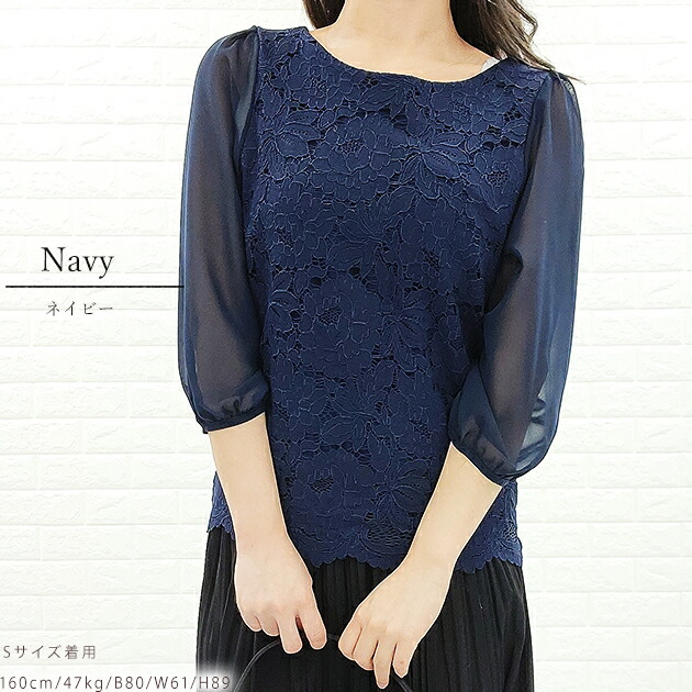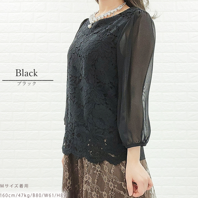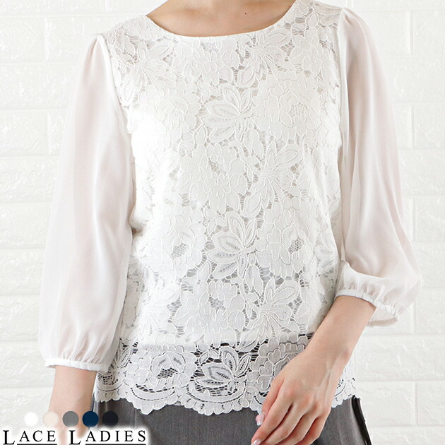 シフォン レース ブラウス 七分袖 レ レディースファッション 新登場! ブラック ホワイト アイボリー グレー ネイビー S M L XL