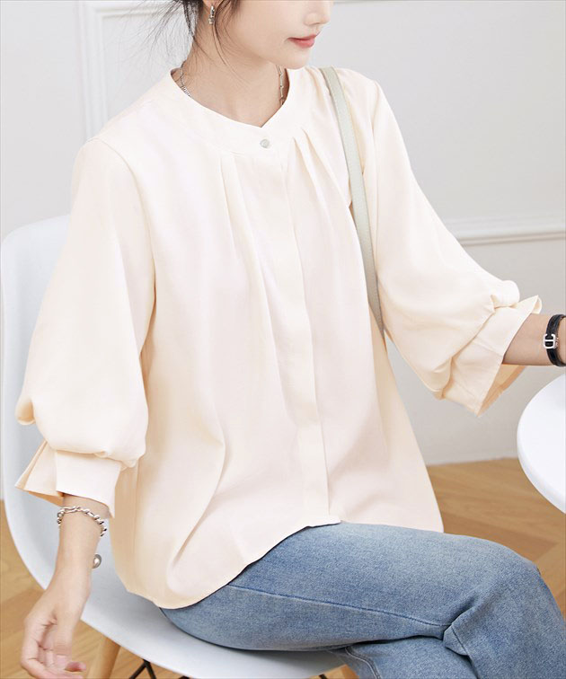 キャンディ袖 7分袖 フレア タック レディースファッション 新登場! ブラック オフホワイト ネイビー ミント S F