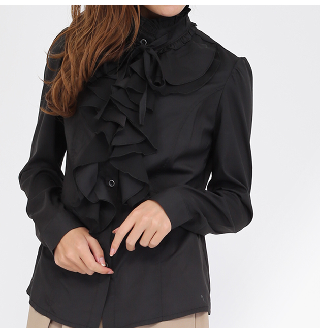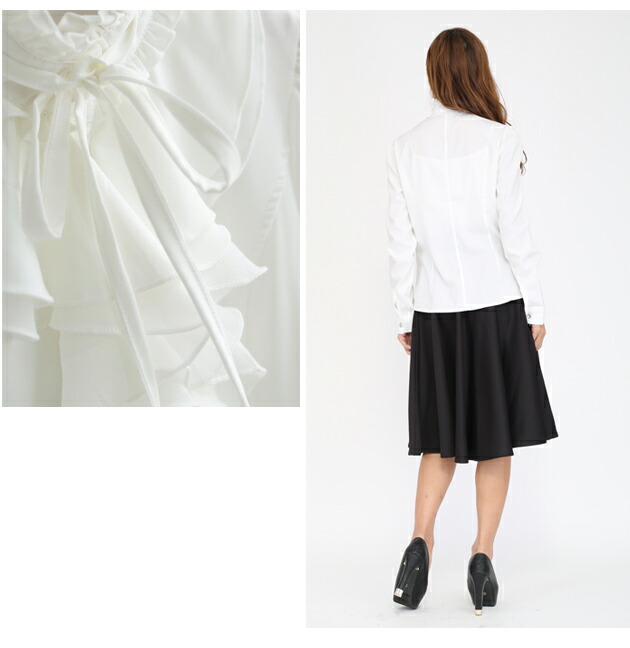 長袖 ブラウス フリル オフィス ラグ トップス シャツ ブラウス 超目玉商品 ホワイト ブラック S M L XL XXL