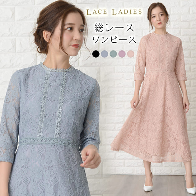 総レース ロング丈 パーティドレス ワ レディースファッション 新登場! ライトブルー ブラック ピンク ラベンダー ミント S M L XL XXL