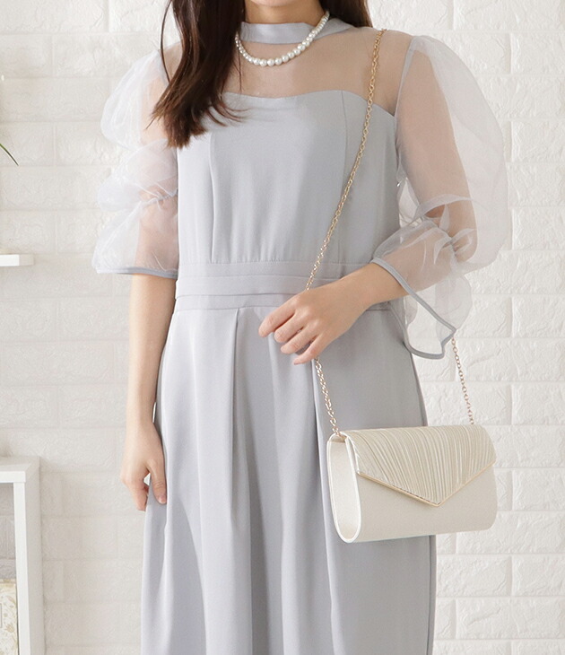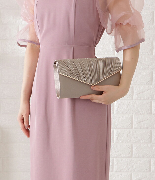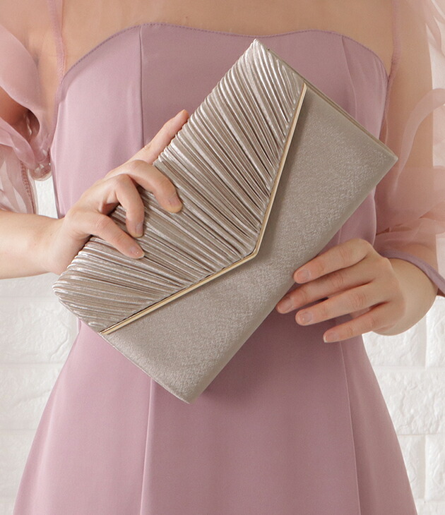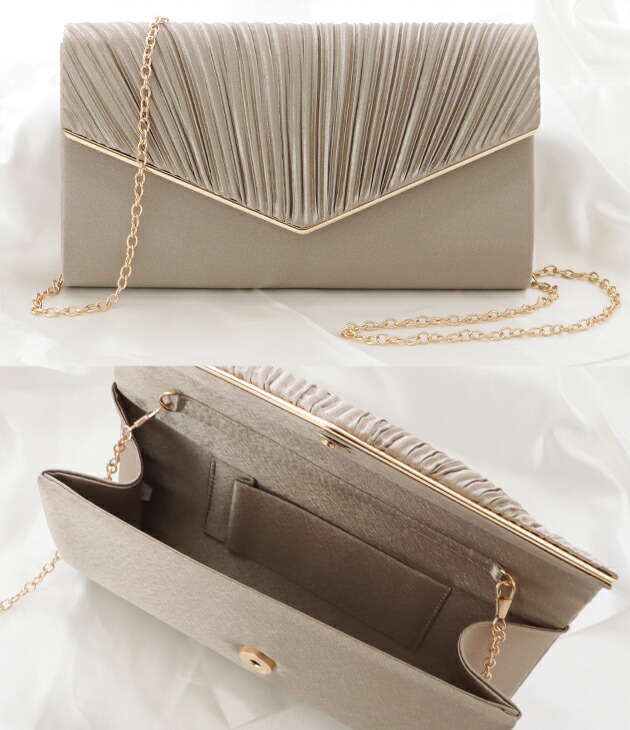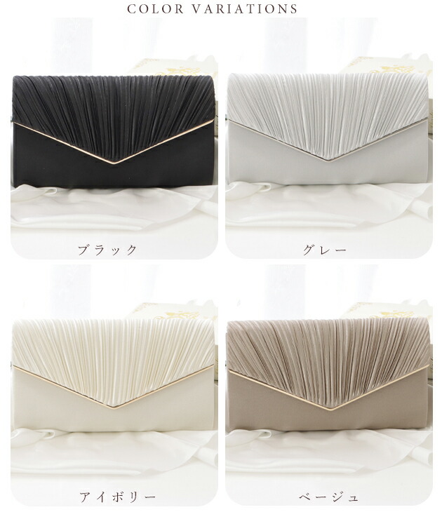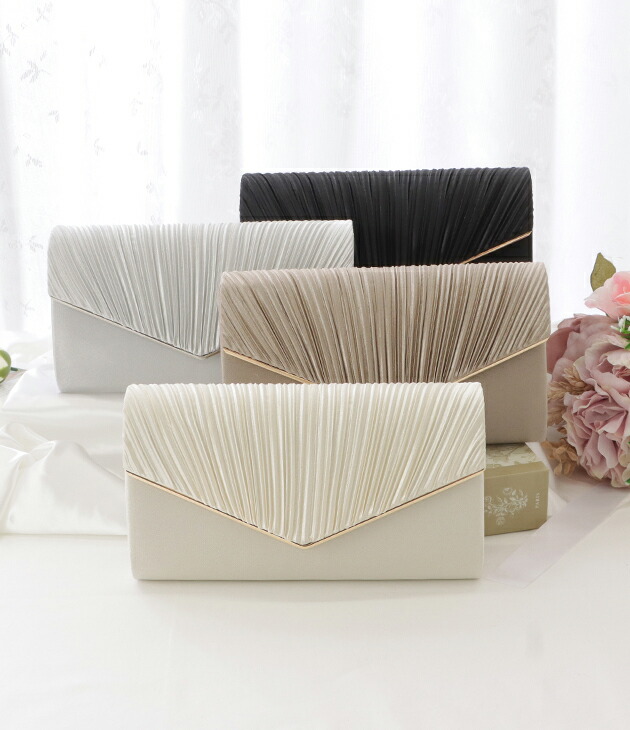 2WAYストラップ付きプリーツコンパク バッグ レディースバッグ パーティーバッグ 豊富 ブラック アイボリー グレー ベージュ