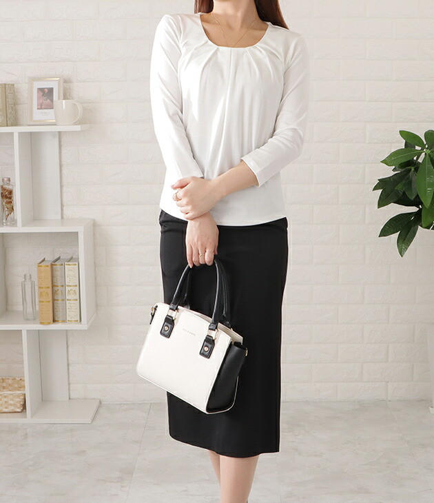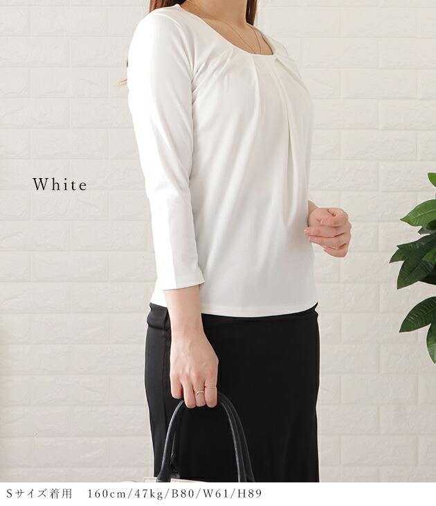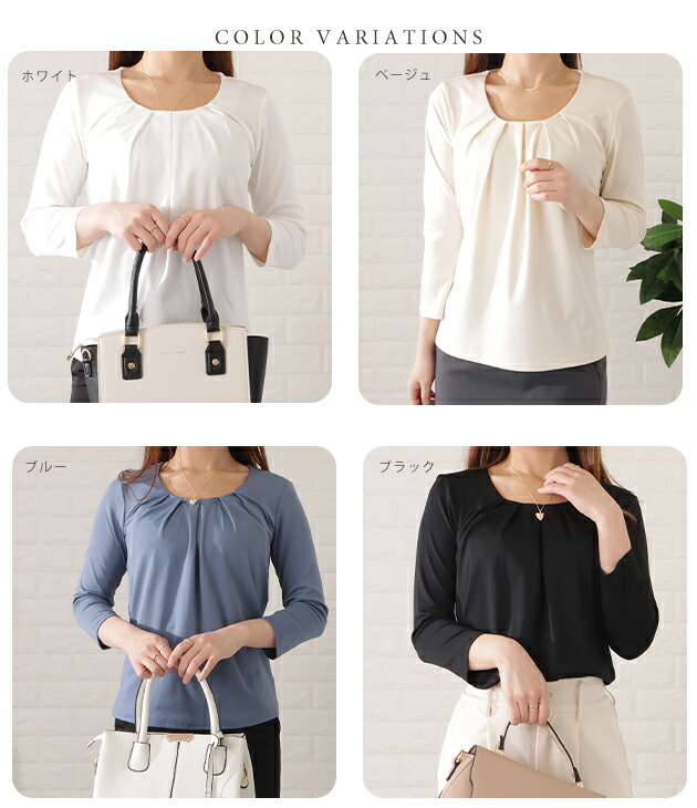 7分袖タックフロントプルオーバー レデ レディースファッション 超目玉商品 ブラック ホワイト ベージュ ブルー S M L XL