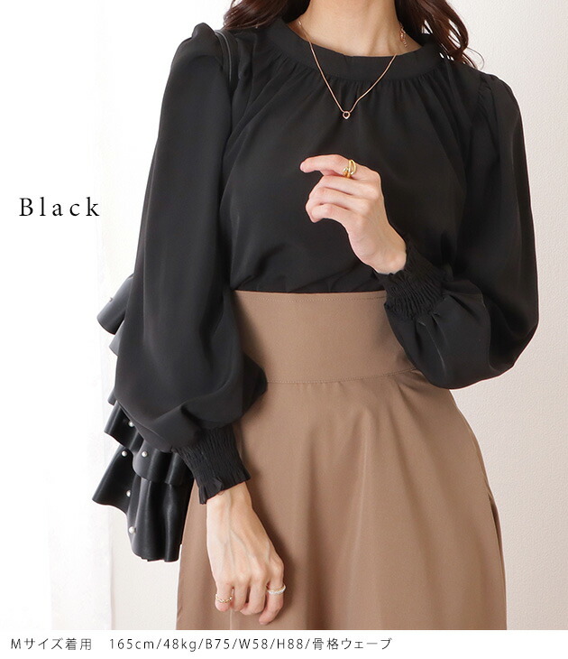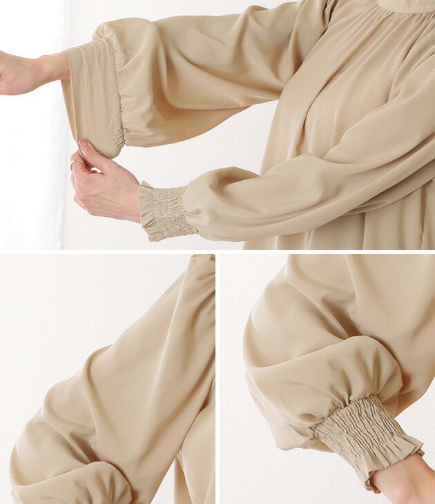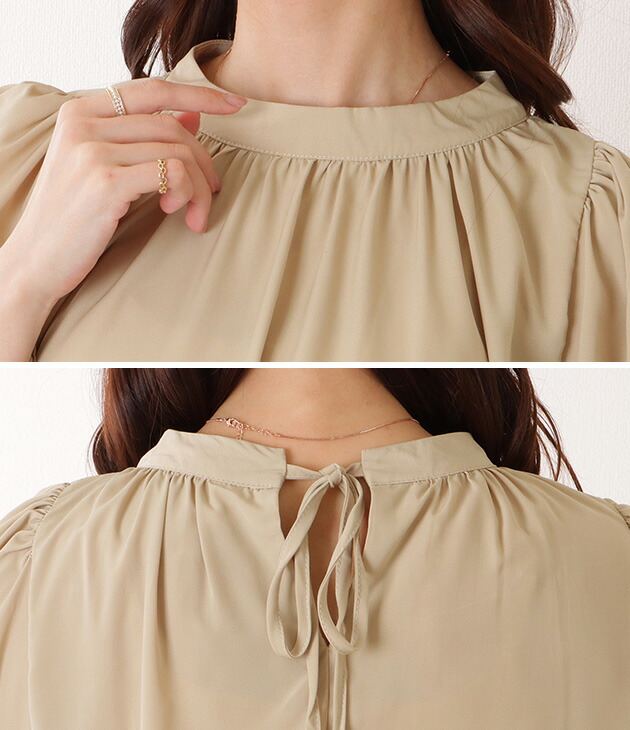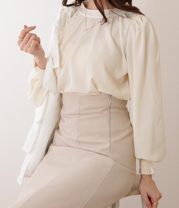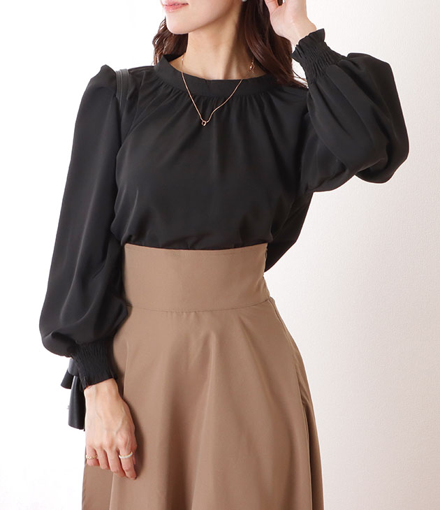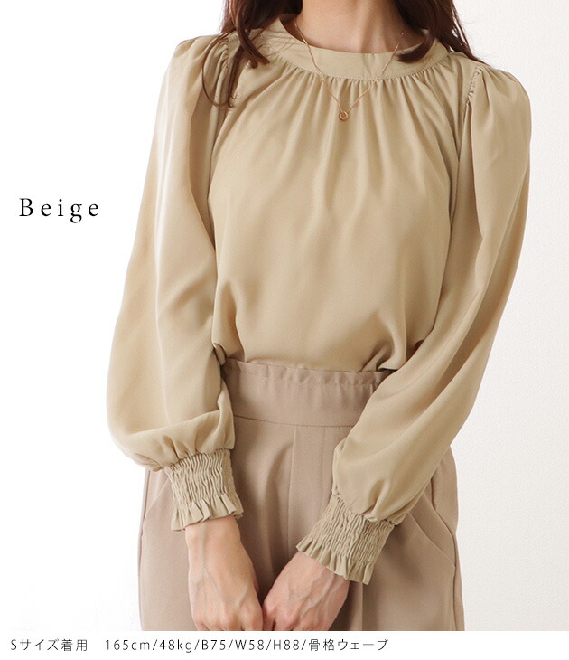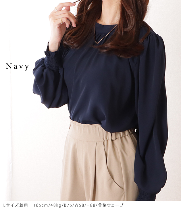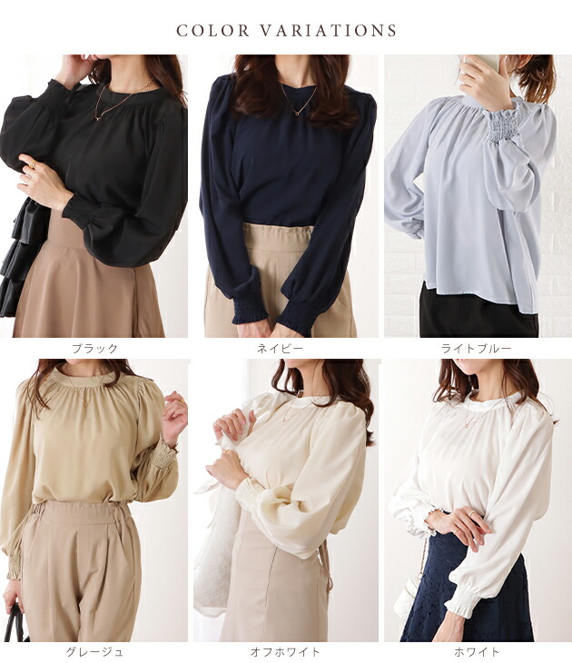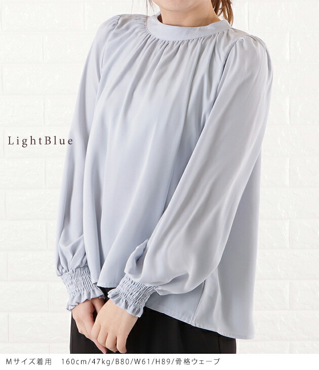 ハイネック バルーンスリーブ ブラウス トップス シャツ ブラウス 超目玉商品 オフホワイト ブラック ベージュ ライトブルー ネイビー ホワイト S M L XL