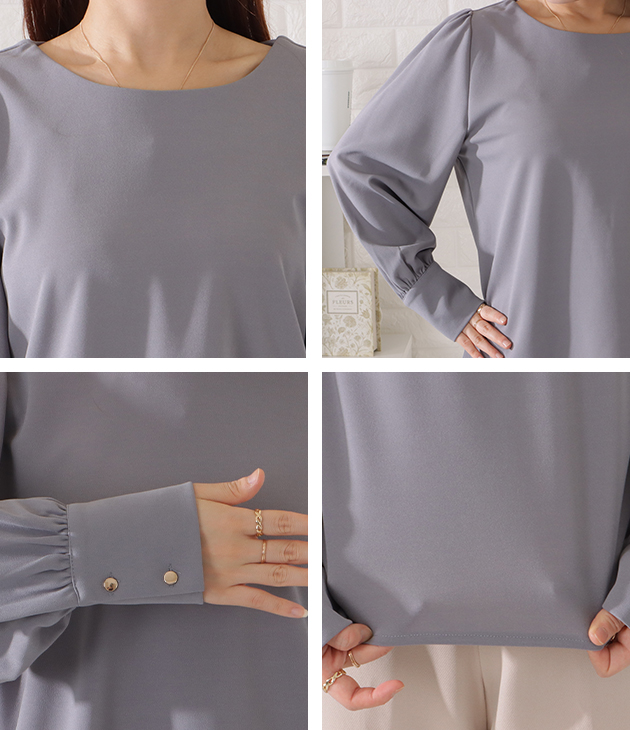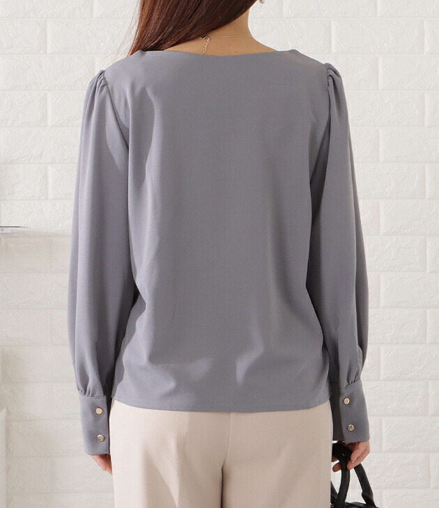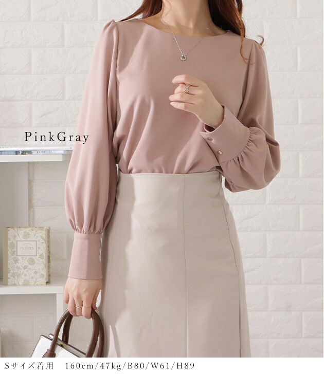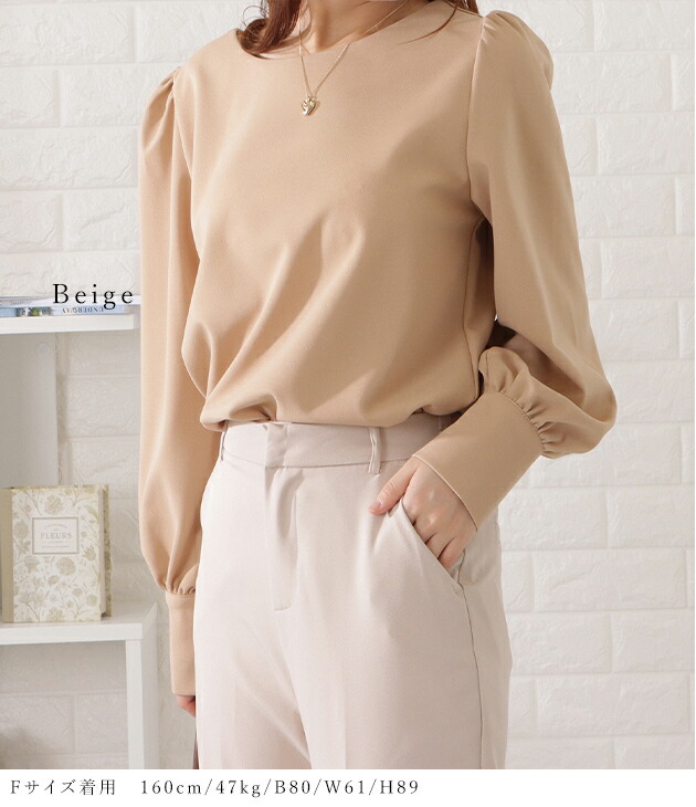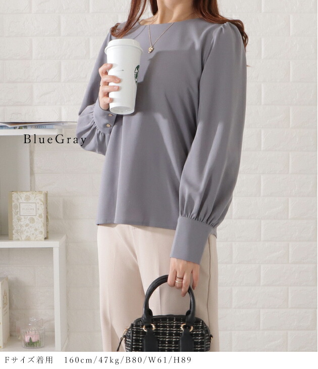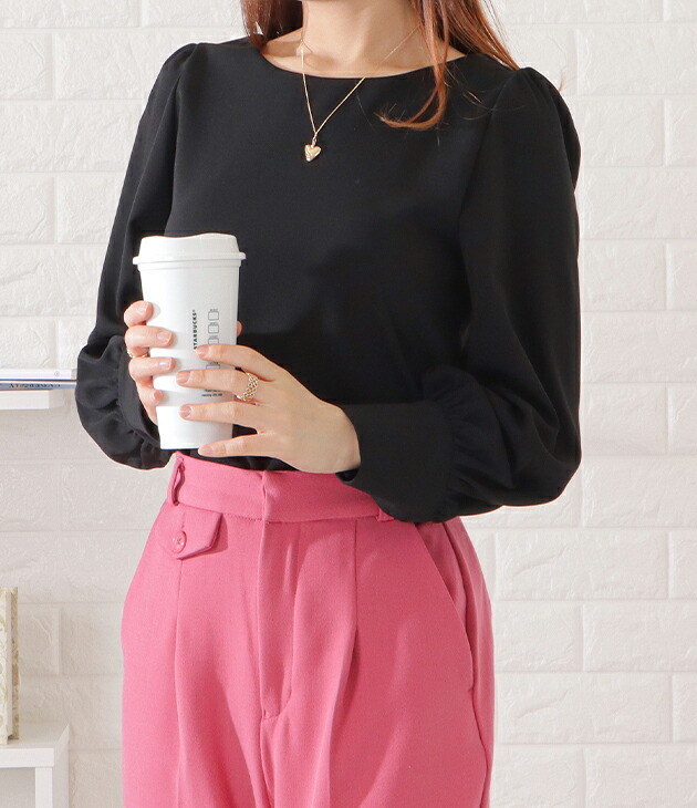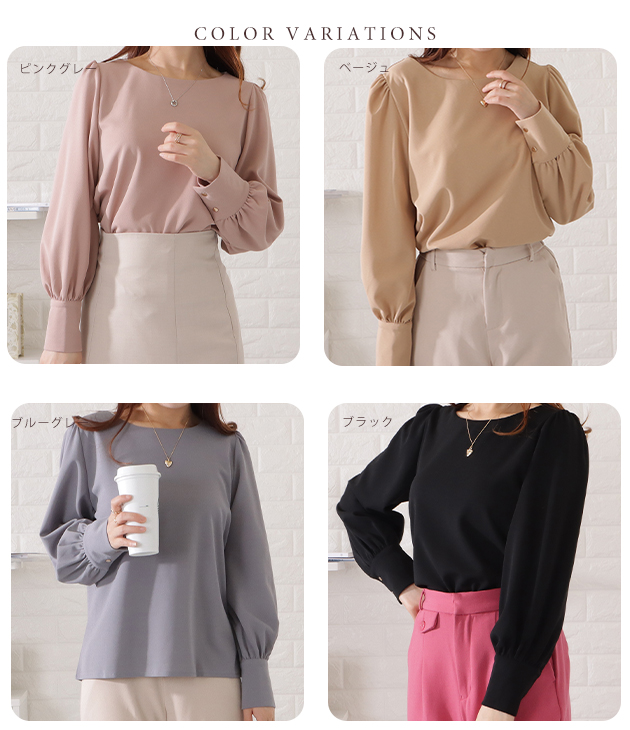 バルーンスリーブとろみタックブラウス トップス シャツ ブラウス 超目玉商品 ブラック ベージュ ブルーグレー ピンクグレー S F