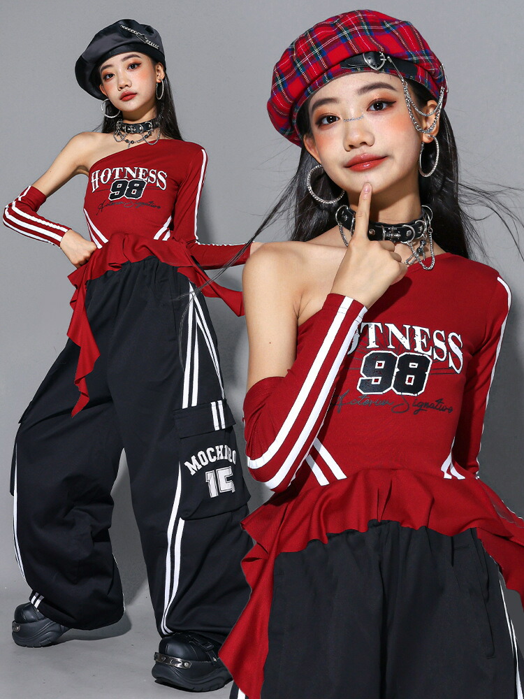 ガールズ ヒップホップ 衣装 赤 黒 キッズ ベビー マタニティ 新登場! 長袖パンツタイプ2点set 長袖スカートタイプ2点set オフショルパンツタイプ3点set オフショルスカートタイプ3点set 長袖トップスのみ オフショルトップスのみ パンツのみ スカートのみ 110サイズ 120サイズ 130サイズ 140サイズ 150サイズ 160サイズ 170サイズ 180サイズ
