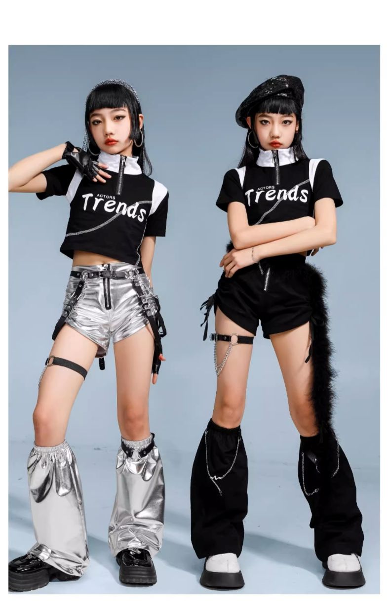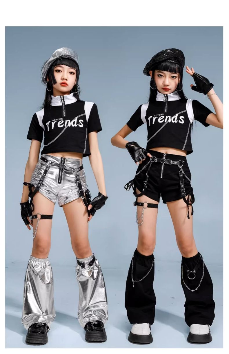 ダンス衣装 キッズ セットアップ K- 体操 ダンス 社交ダンス ウェア 人気 タイプ1(黒短パン)上下3点set タイプ2(銀短パン)上下3点set タイプ3(銀長ズボン)上下2点set タイプ4(黒長ズボン)上下2点set タイプ1上下4点set(ファー付き) タイプ2上下4点set(ファー付き) トップスのみ 黒短パンのみ(脚カバー込み) 銀短パンのみ(脚カバー込み) 銀長ズボンのみ 黒長ズボンのみ 110サイズ 120サイズ 130サイズ 140サイズ 150サイズ 160サイズ 170サイズ 180サイズ