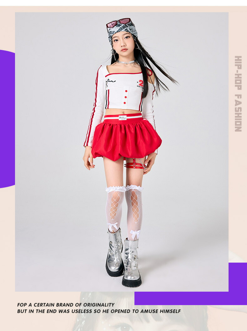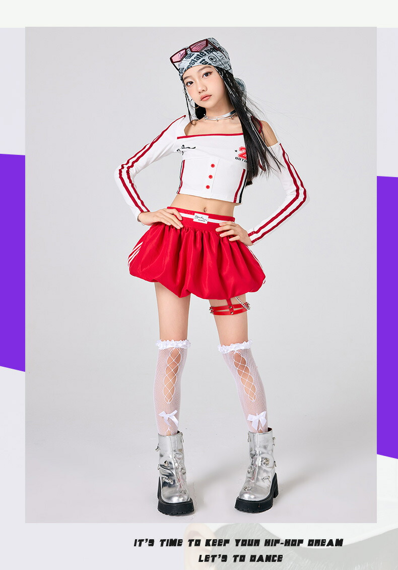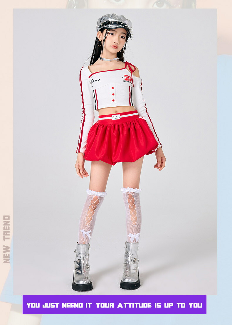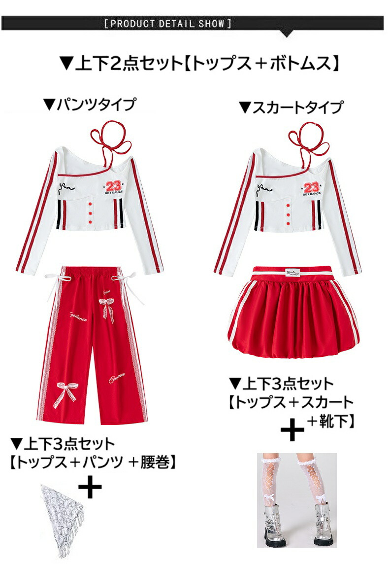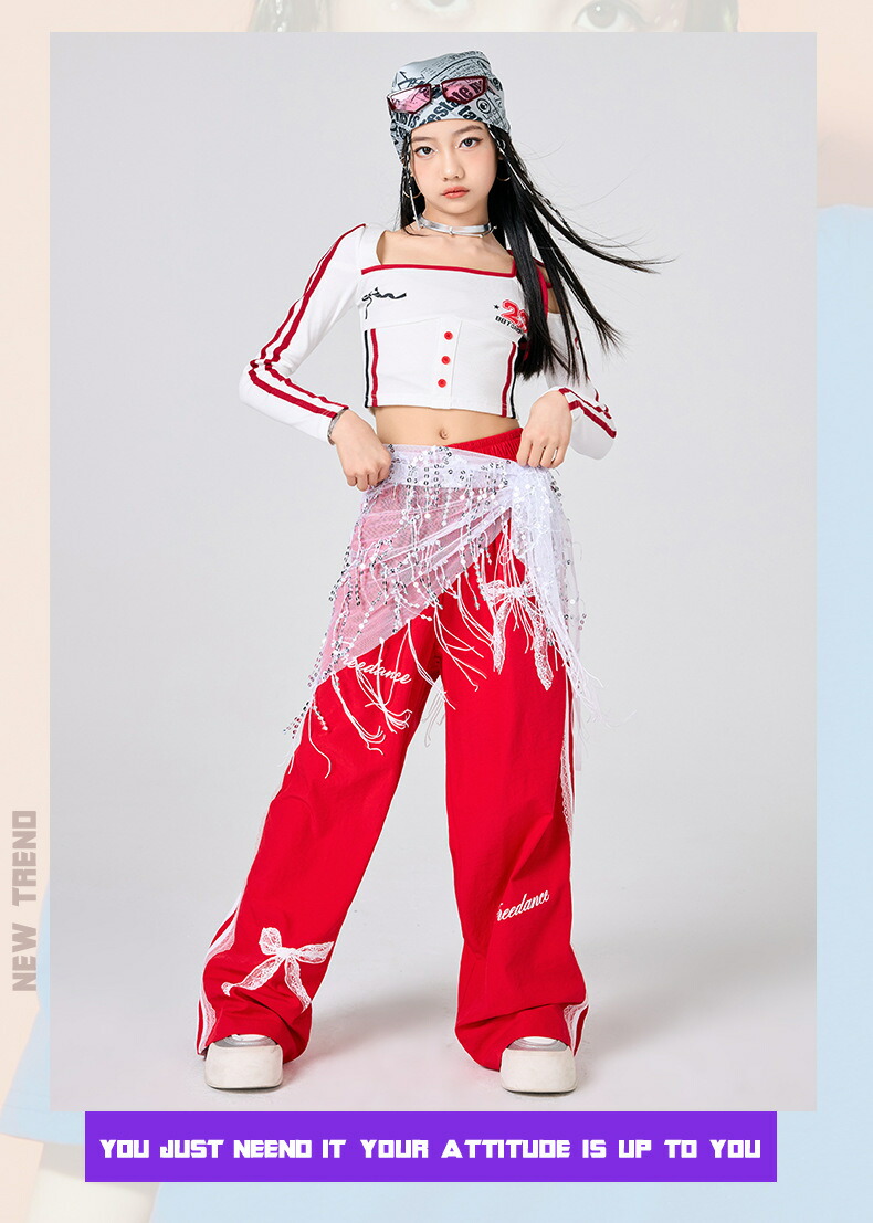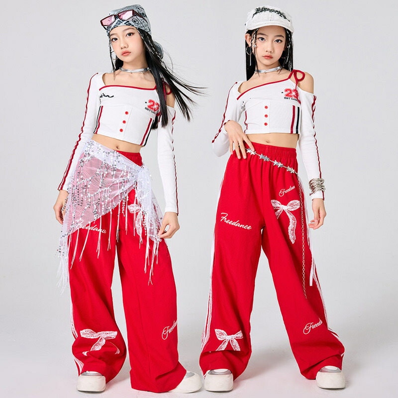 ガールズ ヒップホップ 衣装 白 赤 キッズ スーツ カジュアルセットアップ カジュアルパンツセット 新登場! パンツタイプ上下2点set スカートタイプ上下2点set パンツタイプ3点set(腰巻付き) スカートタイプ3点set(靴下付き) トップスのみ パンツのみ スカートのみ 120サイズ 130サイズ 140サイズ 150サイズ 160サイズ 170サイズ 180サイズ