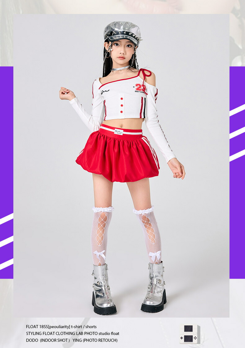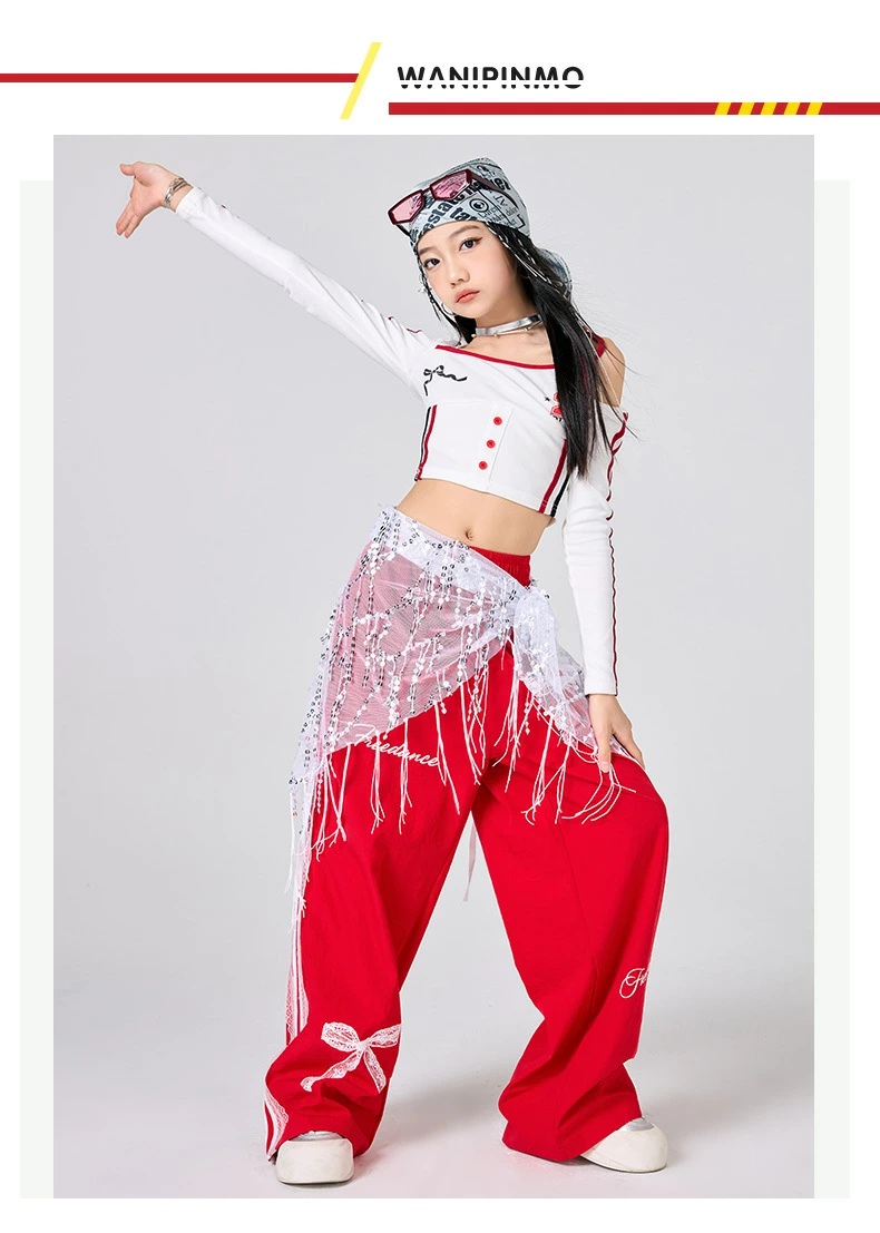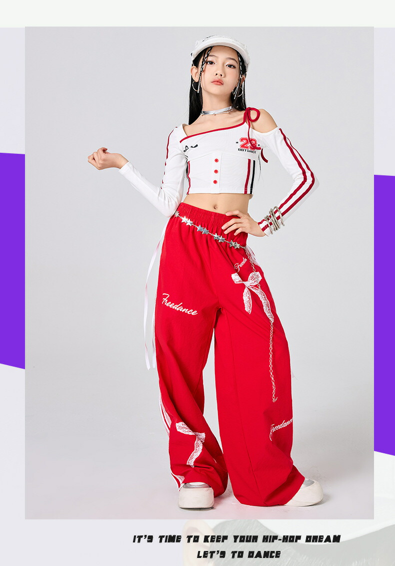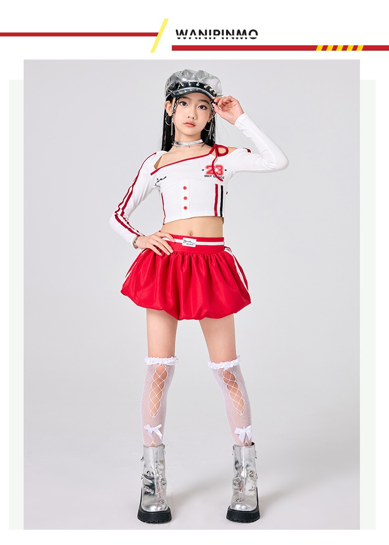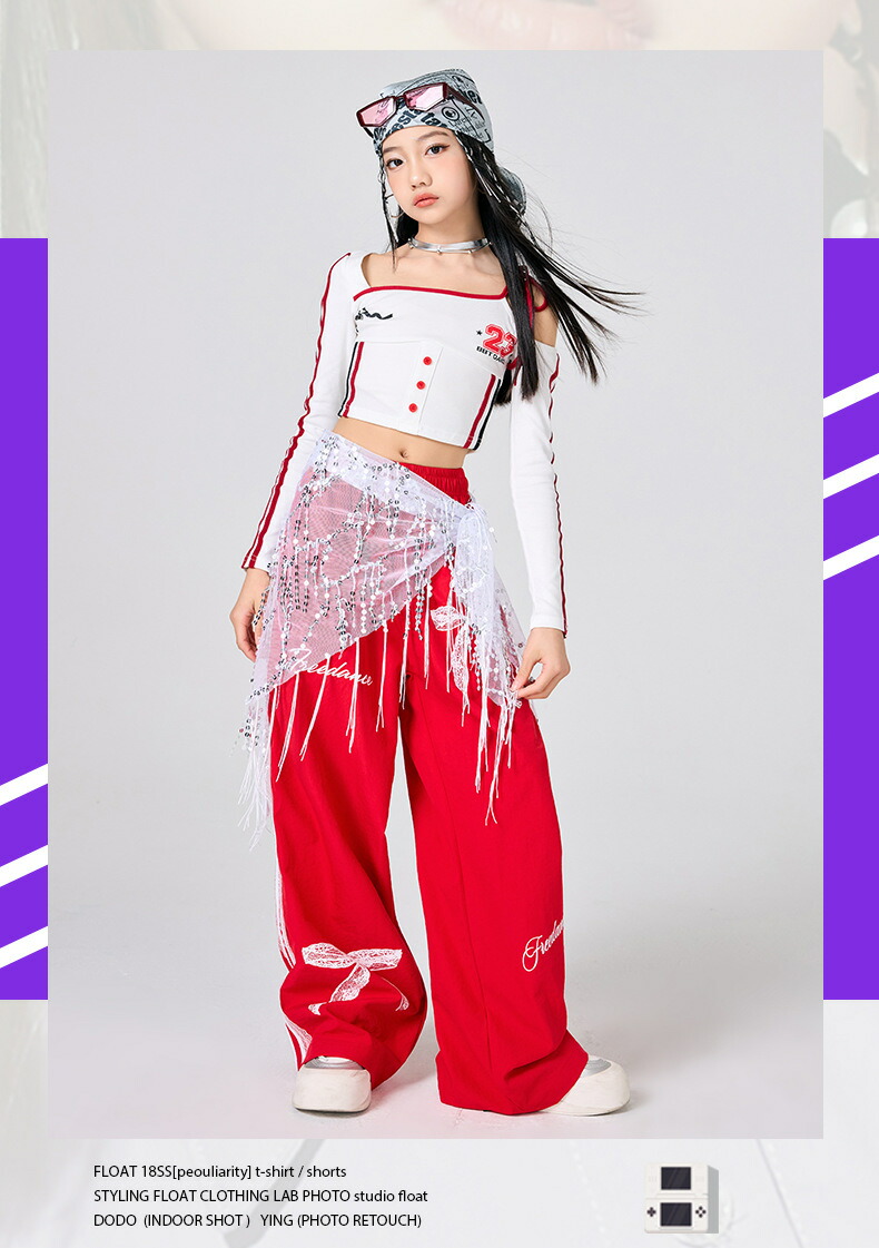 ガールズ ヒップホップ 衣装 白 赤 キッズ スーツ カジュアルセットアップ カジュアルパンツセット 新登場! パンツタイプ上下2点set スカートタイプ上下2点set パンツタイプ3点set(腰巻付き) スカートタイプ3点set(靴下付き) トップスのみ パンツのみ スカートのみ 120サイズ 130サイズ 140サイズ 150サイズ 160サイズ 170サイズ 180サイズ