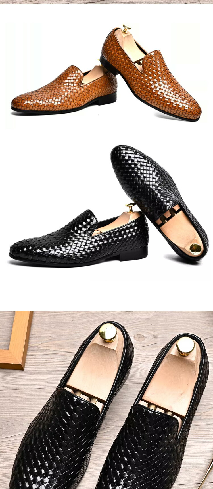 ローファー 本革 イントレチャート 編み込み 一層牛革 スワールモカ 高級感 ラバーソール ブラック ブラウン 通気性