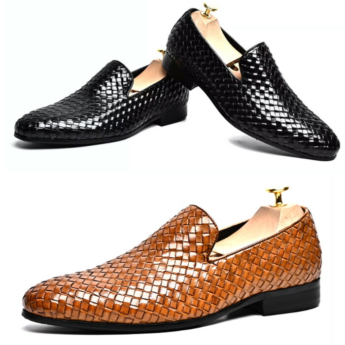 ローファー メンズ 編み込み イントレチャート本革 一層牛革 ビジネス...