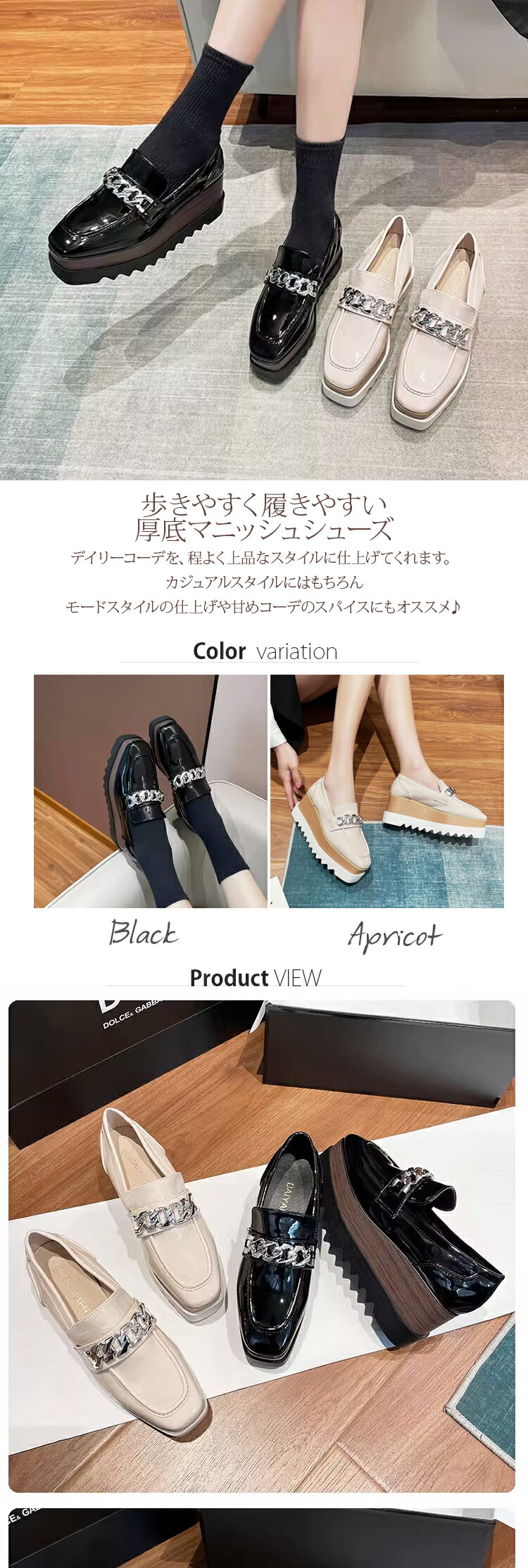 ローファー レディース 厚底 スクエア 靴 豊富な品揃え ブラック アプリコット 22.0cm 22.5cm 23.0cm 23.5cm 24.0cm 24.5cm