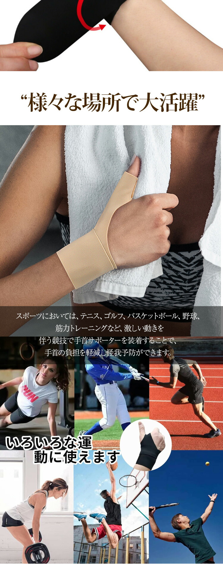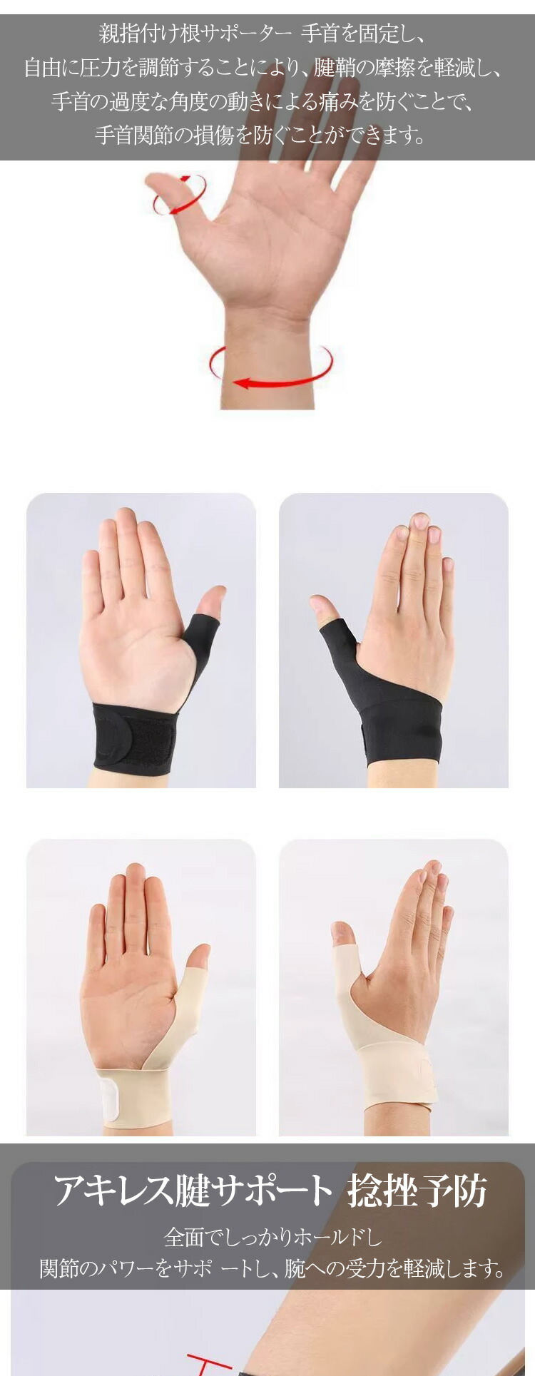 手首サポーター 親指 手首 サポーター スポーツ アウトドア 続々登場 ブラック右用 ブラック左用 ブラック左右セット ベージュ右用 ベージュ左用 ベージュ左右セット