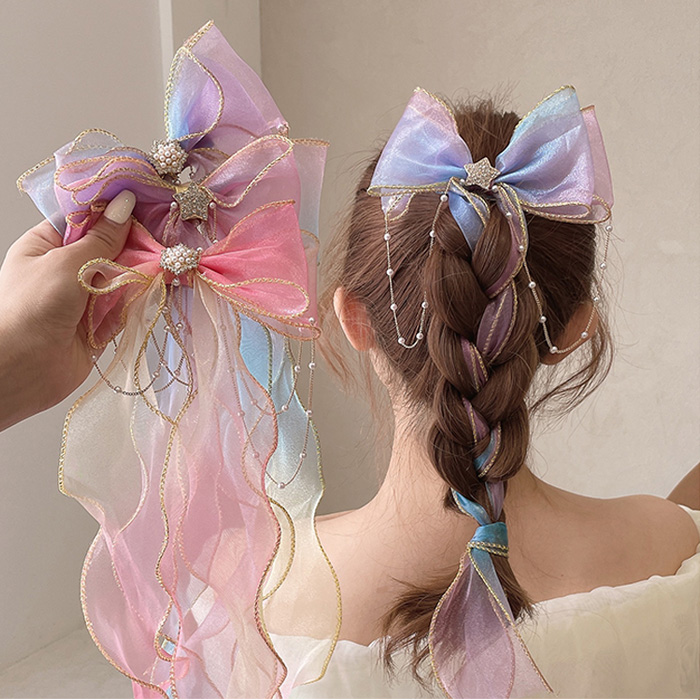 リボン ヘアアクセサリー ビッグリボン レディースジュエリー アクセサリー ヘアアクセサリー バレッタ 豊富 イエロー パープル ブルー ピンク レインボウ イエロー パープル ブルー ピンク レインボー