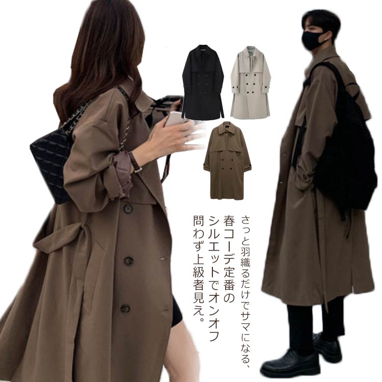 スプリングコート トレンチコート ロン メンズファッション 新作 ブラック ブラウン ライトベージュ M L 2L 3L