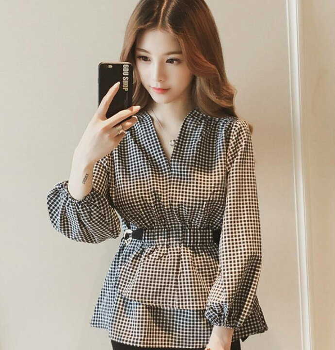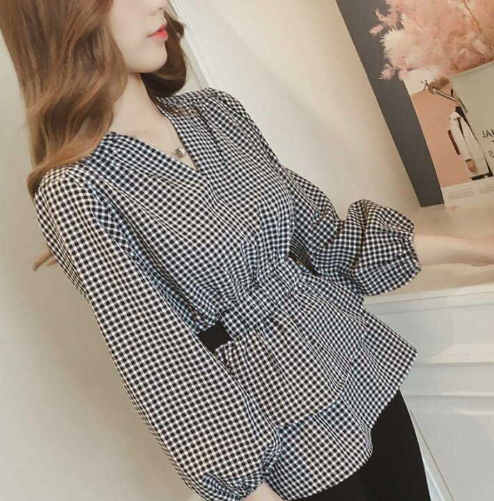 ブラウス 長袖 Vネック ペプラム ウ トップス シャツ ブラウス 新登場! S M L XL 2XL