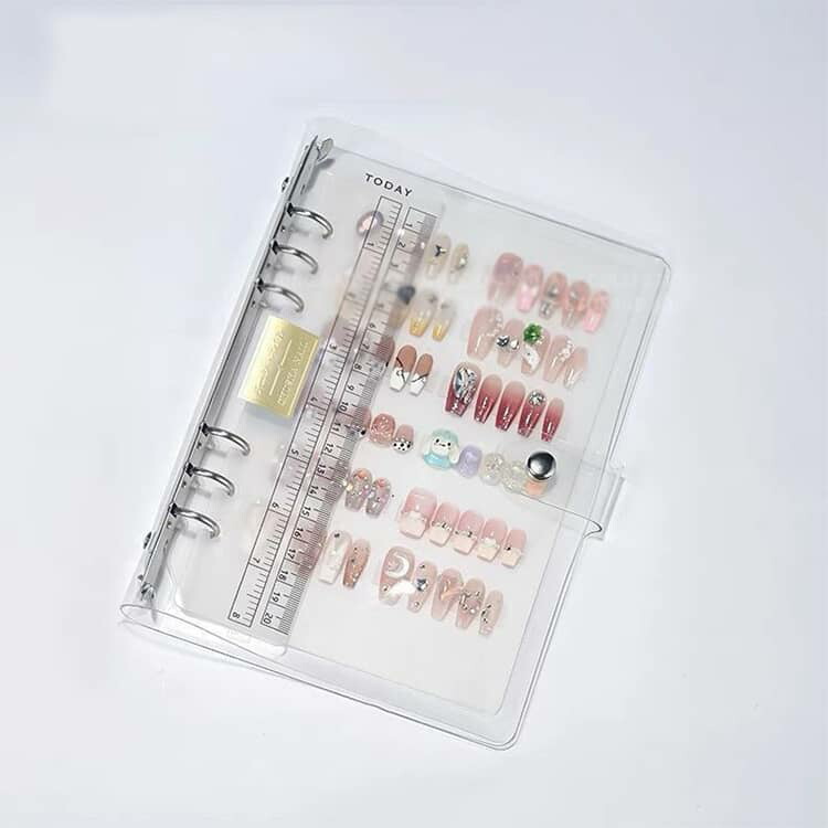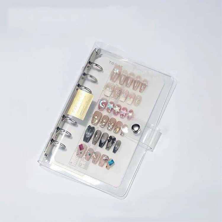 ネイルチップ収納ブック シール帳 バインダー PPシート10枚付き 女の子 透明 台紙 クリア はがせる A4 A5 A6 リフィル10枚 リフィル差し替え可能 保管 交 Oリング式